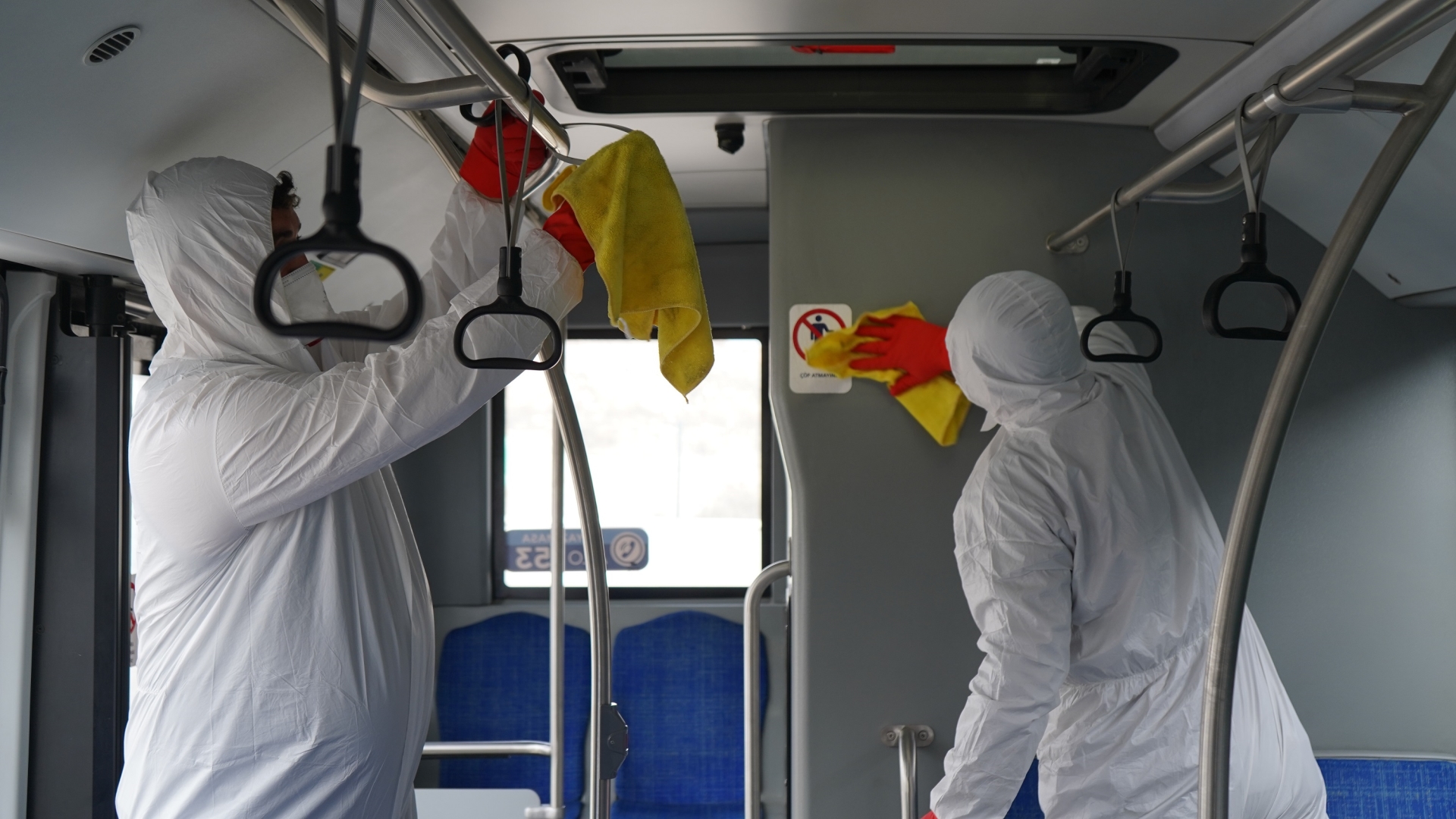 ÖZEL HALK OTOBÜSLERİNE VE İLÇE TOPLU TAŞIMACILIĞINA 75 BİN KEZ DEZENFEKTE YAPILDI