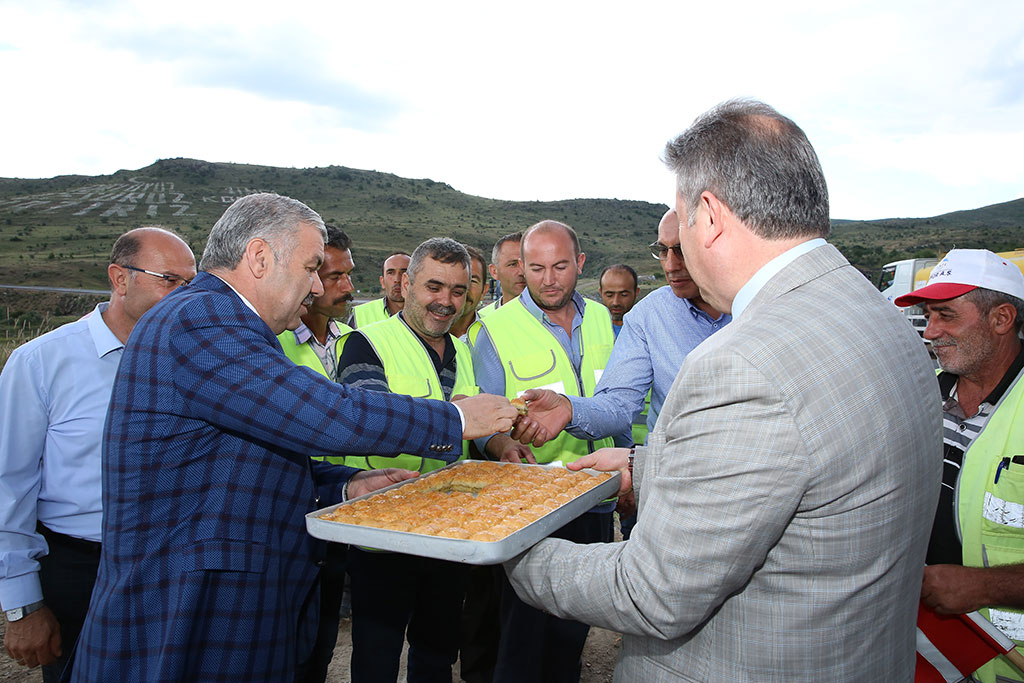 Çalışmaları yerinde takip eden Büyükşehir Belediye Başkanı Mustafa Çelik, bu yolun Kayseri’nin önemli çıkış kapılarından biri olduğunu söyledi. Büyükşehir Belediye Başkanı Mustafa Çelik, Başakpınar çıkışından itibaren yapılan yol çalışmasını Talas Belediye Başkanı Mustafa Palancıoğlu ile birlikte yerinde inceledi. Yol çalışmalarının son durumunu yerinde gören Başkan Çelik, çalışmaların son durumuna ilişkin de bilgi aldı. Talas ve Anayurt bölgesinin doğu tarafına çıkış kapısı olan yolda trafiğin çok yoğun olduğunu ifade eden Başkan Mustafa Çelik, “Talas yol ayrımından Malatya yoluna kadar devam eden 9 km’lik yolun geçen sene 5 km’sini bitirmiştik. Bu sene 4 km’lik kısmını da inşallah çok kısa sürede tamamlayacağız. Elektrik şirketi ve KASKİ burada alt yapıyı bitirdi. Şimdi biz yolun konforunu artırıyoruz ve yolun geometrisini düzeltiyoruz. 12 metre genişliğinde bir platform oluşturuyoruz. Bu yolu açtığımızda inşallah Talas istikametinden gelip, Malatya istikametine gidecekler için çok kestirme, çok kısa ve konforlu bir yol ortaya çıkmış olacak. Aynı zamanda yolun kalitesini şehir içinde kullandığımız bitümlü sıcak karışım asfalt kullanarak artırıyoruz” dedi. Talas Belediye Başkanı Mustafa Palancıoğlu da Büyükşehir Belediyesi’nin Talas’a vermiş olduğu destek için teşekkür etti. Büyükşehir Belediyesi’nin Talas’a çok önemli hizmetler kazandırdığını vurgulayan Palancıoğlu, “Geçtiğimiz sene özellikle Başakpınar’ın merkezindeki asfalt çalışması tamamlandı. Bir önceki sene Malatya yoluyla Başakpınar arası yapıldı. Geçtiğimiz senede en son Komando Caddesi dediğimiz Zincidere Komando Tugayı’na kadar olan kısmın asfaltı gerçekleştirildi. Bu sene de son kısım olan 4 km’lik Başakpınar’ın çıkışıyla tugay arasında kalan kısım yapılıyor. 1 ay içerisinde burası da bitiyor. Şahsınıza tüm Büyükşehir çalışanlara teşekkür ediyorum. Sizin zaten göreve geldiğinizden beri ulaşıma imza atma hedefiniz vardı. Talas’ta geçtiğimiz sene Halef Hoca Caddesi, Komando Caddesi başta olmak üzere birçok hizmet yaptınız. Allah razı olsun. Sizlere ve ekibinize tekrar teşekkür ediyorum” diye konuştu. “BİRLİK BERABERLİĞİN BEREKETİ” Büyükşehir Belediye Başkanı Mustafa Çelik, açıklamasında uyum kültürüne de vurgu yaparak, “Bir taraftan biz yolu yaparken Talas Belediyesi de sağ ve solda kaldırım ve bordür çalışması yapıyor. Alet, araç ve gereç yardımlaşmasında bulunuyoruz. Bu birlik ve beraberliğin verdiği bereket sonuçta hemşehirlerimize hizmet olarak yansıyor. Bunu başka şehirlerde görmeniz mümkün değil. Kayseri’de iki ayrı belediye gibi değil, kol kola girmiş iki belediye gibi çalışıyoruz” dedi. Büyükşehir Belediye Başkanı Mustafa Çelik ve Talas Belediye Başkanı Mustafa Palancıoğlu, yoldaki incelemeleri sırasında çalışanlara da tatlı ikram ettiler.