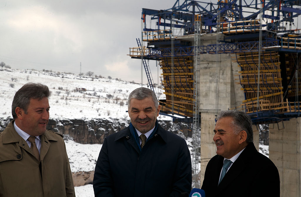 Büyükşehir Belediye Başkanı Mustafa Çelik, Güney Çevreyolu’nun en önemli bağlantısı olan Derevenk Viyadüğü ve bağlantı yollarıyla ilgili bölgede incelemelerde bulundu. Başkan Çelik, Karayolları Bölge Müdürlüğü, Melikgazi Belediyesi ve Talas Belediyesi ile uyumlu bir çalışma yaptıklarını belirtti ve viyadük bağlantı yollarının yapımına önümüzdeki yıl başlayacaklarını kaydetti. Büyükşehir Belediye Başkanı Mustafa Çelik, Derevenk Viyadüğü çalışmalarını yerinde takip etti. Melikgazi Belediye Başkanı Memduh Büyükkılıç ve Talas Belediye Başkanı Mustafa Palancıoğlu ile birlikte bölgeye giden Başkan Çelik, bağlantı yolları ile ilgili projeleri inceledi. Büyükşehir Belediye Başkanı Çelik, Melikgazi ve Talas Belediye Başkanları ile birlikte Derevenk Viyadüğü şantiyesini de ziyaret etti. Karayolları Bölge Müdürü Şenol Altıok ile bir araya gelen Başkan Çelik, Derevenk Viyadüğü ve Bağlantı Yolu animasyonunu izledi ve çalışmaların son durumuna ilişkin bilgi aldı. Derevenk Viyadüğü ve bağlantı yollarının 2019 yılında trafiğe açılacağını ifade eden Başkan Mustafa Çelik, “Kayseri’de her zaman söylediğimiz gibi bir uyum kültürü var. Kayseri’ye bir hizmet yapılacaksa her birim üzerine düşeni koordineli bir şekilde yapmayı kendine görev bilir. Büyükşehir Belediyesi, ilçe belediyelerimiz ve işi yapan taraf olan Karayolları ile beraber 2019 senesinde açmayı planladığımız bu yolla ilgili yapacağımız çalışmaları planlıyoruz. Viyadüğün bitimiyle eş zamanlı olarak, bağlantı yollarının da bitirilmesi gerekiyor. Mimarsinan Organize Sanayi Bölgesi’nden, viyadüğün karşı tarafındaki Talas Kavşağı’na kadar olan yaklaşık 3,5 km yolun yapım işi Karayolları Bölge Müdürlüğümüze ait. Viyadüğün girişinden Talas’a ve Tavlusun Caddesi’nden Melikgazi’ye uzanan bağlantı yolu da bizim işimiz. İnşaat sezonunun başlamasıyla beraber önümüzdeki sene bu yolların imalatına başlayacağız. İnşaat sezonuna hazır olmak için kış mevsimi içinde bizim planlamaları bitirmemiz gerekiyor. Bu nedenle üç belediye başkanı olarak bölgedeyiz” dedi. Başkan Mustafa Çelik, şehrin ana akslarından Kuzey Çevre Yolu’ndan sonra Güney Çevre Yolu’nun batı tarafındaki kısmın da trafiğe açıldığını hatırlatarak, Derevenk Viyadüğü ve bağlantı yollarıyla doğu tarafının da trafiğe açılacağını kaydetti. Melikgazi Belediye Başkanı Memduh Büyükkılıç ise üzerlerine düşeni yapacaklarını ifade ederek, “Büyükşehir Belediye Başkanımızın önderliğinde üzerimize düşen ne varsa her zaman olduğu gibi katkı sağlayacağız. Amacımız Kayseri’mizin daha yaşanabilir, daha planlı, daha imarlı yollarla donatılmasını sağlamak” diye konuştu. Talas Belediye Başkanı Mustafa Palancıoğlu da viyadük ve bağlantı yollarının şehir trafiğini ve özellikle Sivas Caddesi trafiğini çok rahatlatacağını dile getirerek, “Büyükşehir Belediye Başkanımızın liderliğinde Melikgazi ve Talas olarak elimizden geldiğince projenin hayata geçmesi için destek veriyoruz” dedi.