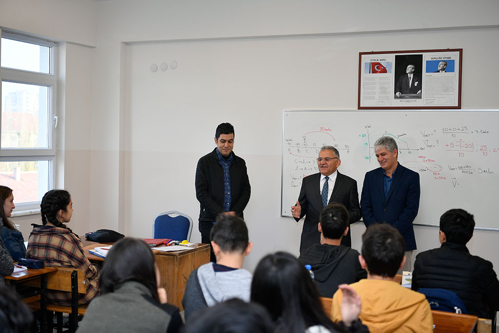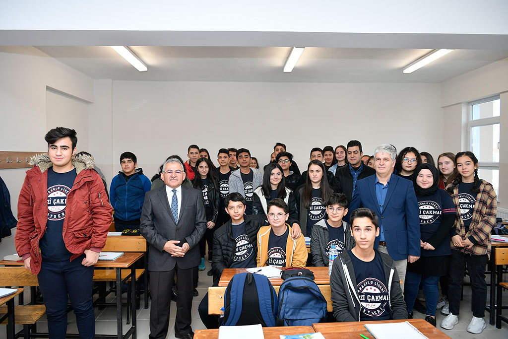 Kayseri Büyükşehir Belediye Başkanı Dr. Memduh Büyükkılıç, eğitime verdiği önemi sık sık yaptığı okul ziyaretleriyle gösteriyor. Fevzi Çakmak Anadolu Lisesi’ni ziyaret eden Başkan Memduh Büyükkılıç, öğretmenlerin, öğretmenler gününü kutladı, öğrencilere de bir dizi tavsiyede bulundu. Büyükşehir Belediye Başkanı Dr. Memduh Büyükkılıç, bir haftalık tatilin ardından eğitim ve öğretimin başladığı ilk günde Fevzi Çakmak Anadolu Lisesi öğretmen ve öğrencilerini yeni binalarında ziyaret etti. Okul Müdürü Yener Kaynar ile birlikte yeni binayı gezen ve sınıflara giren Başkan Büyükkılıç, öğretmenlerin öğretmenler gününü kutladı. Öğrencilerle yaptığı sohbette teknoloji uyarısı yapan Başkan Memduh Büyükkılıç, “Akıllı telefonlar, televizyonlar, tabletler yerli yerince kullanılmayınca özellikle beyinde tahribat yapıyor. Üstelik akıllı telefon ve tabletler avutma amacıyla gelişim aşamasında olan yavrularımızın ellerine veriyoruz. Teknoloji yerli yerinde kullanılınca güzeldir, aksi halde zarar verir” diye konuştu. Sınıflarda öğrencilerin sorularını da cevaplayan Başkan Büyükkılıç, bir öğrencinin meslek önerisi istemesi üzerine “Kişiliğinize en uygun meslekleri seçin. Fıtratınıza, yeteneğinize uygun olan meslekleri seçmelisiniz ki başarılı olabilesiniz. Mesleğin iyisi kötüsü olmaz. Önemli olan başarılı olmak, o meslekte kendinizi iyi yetiştirmektir” dedi. Öğrencilerin bir yarışta olduğunu ve bu yarışta başarılı olabilmeleri için çok çalışmaları gerektiğini dile getiren Başkan Büyükkılıç, “Zamanında çalışırsanız size kimsenin gücü yetmez. Vaktimizi iyi değerlendirelim. İnsanın kıymetini bilmediği çok şey var. Bunlar üç başlıkta özetlemek gerekirse birincisi vakit. Vaktinizi iyi değerlendirmezseniz, sonra zaman geçer ve keşke demeye başlarsınız; ama zaman geri gelmez. İkincisi sağlık konusu. Sağlığı da kaybettiğimizde keşke deriz; ama geri gelmesi zordur. Bir de servet denir. Buna imkanlar da diyebiliriz. Vaktinizin, sağlığınızın, imkanlarınızın, ailenizin, vatanınızın, bayrağınızın ve birbirinizin kıymetini bilin” diye konuştu. Büyükşehir Belediye Başkanı Dr. Memduh Büyükkılıç, Fevzi Çakmak Anadolu Lisesi öğretmenleriyle de bir toplantı yaparak taleplerini dinledi.