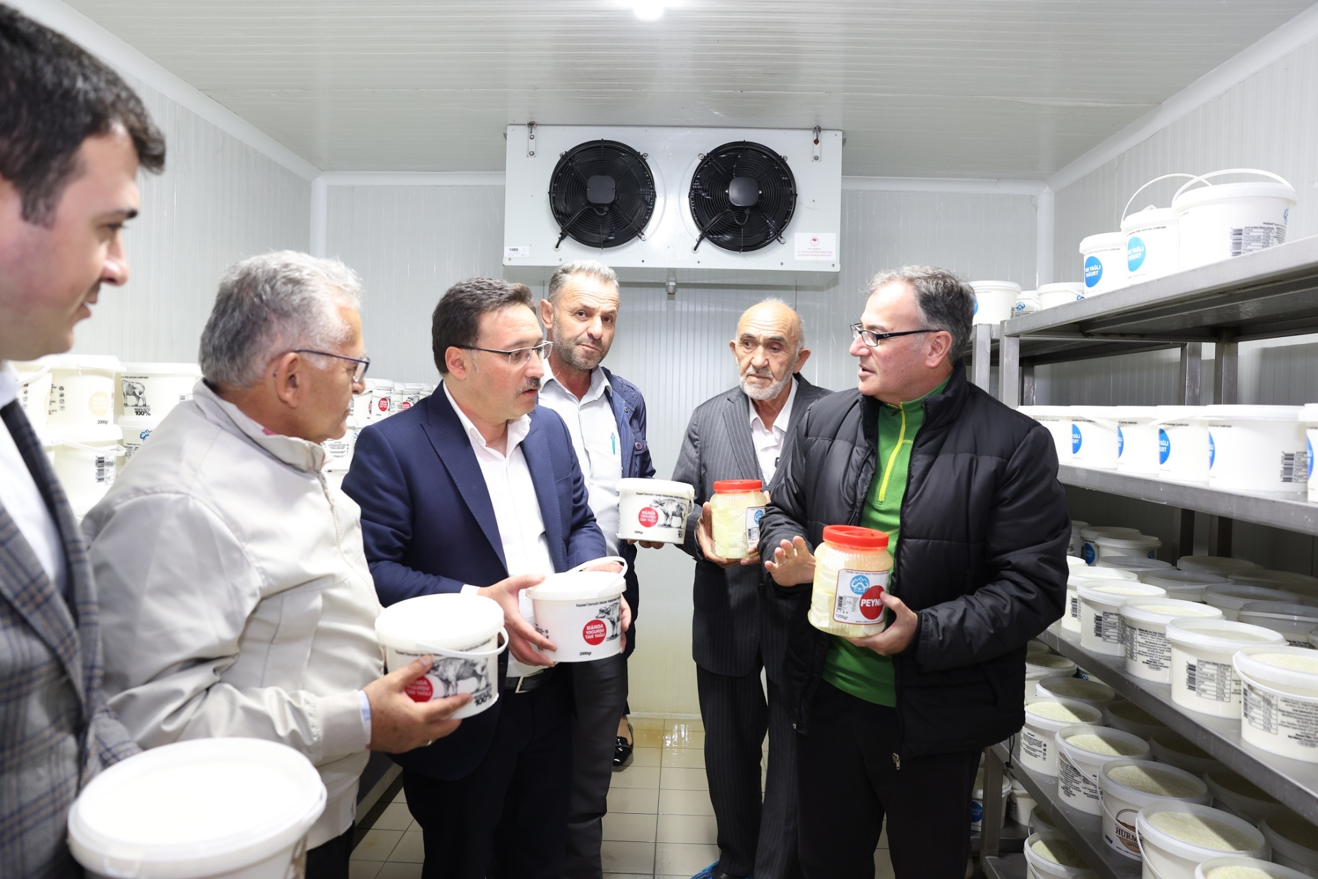 peynirleri inceleyen Büyükkılıç ve Çiçek, daha sonra at binerek, bir süre