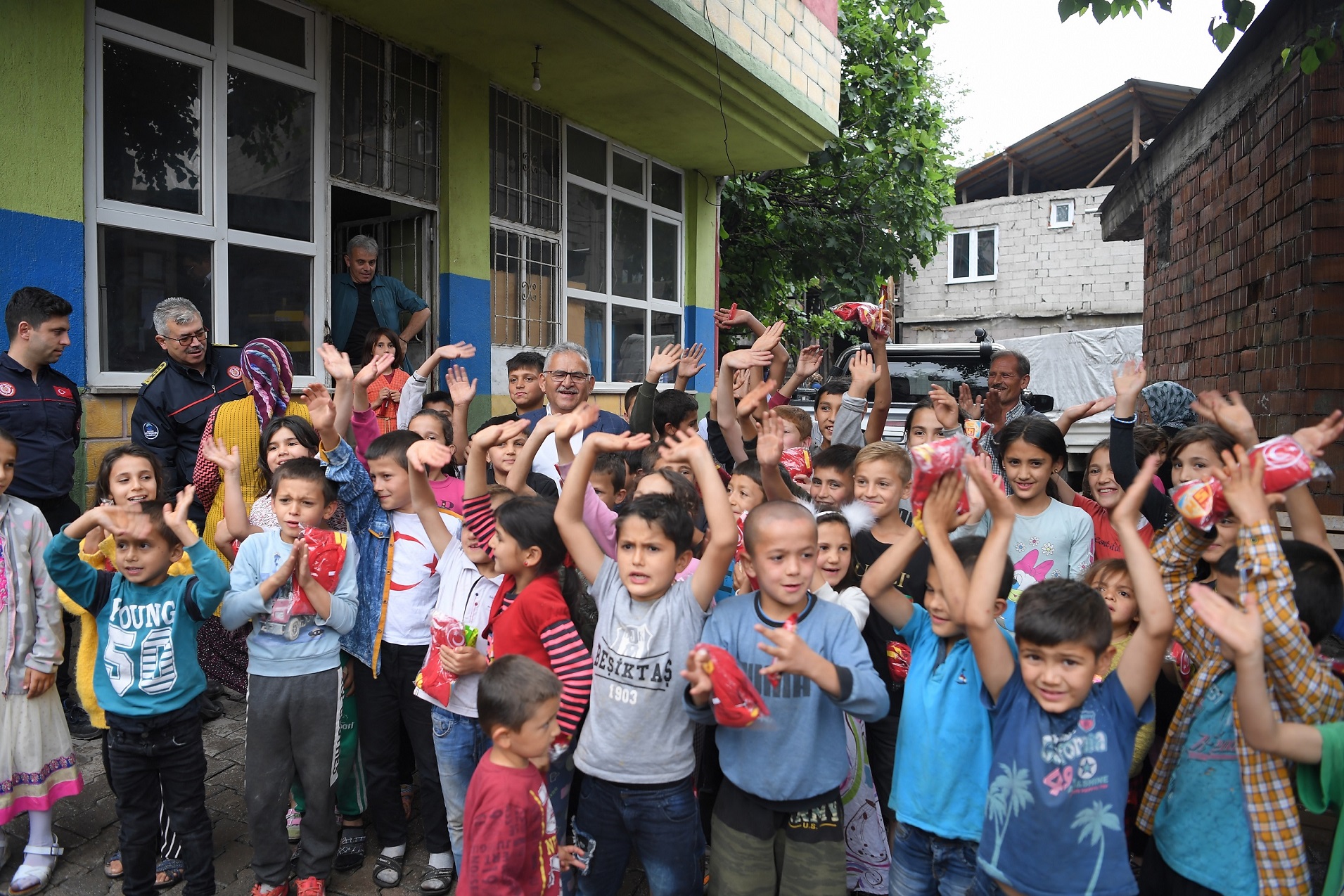 çocuklara Kayserispor forması ve oyuncaklar da hediye etti. Vatandaşlar da