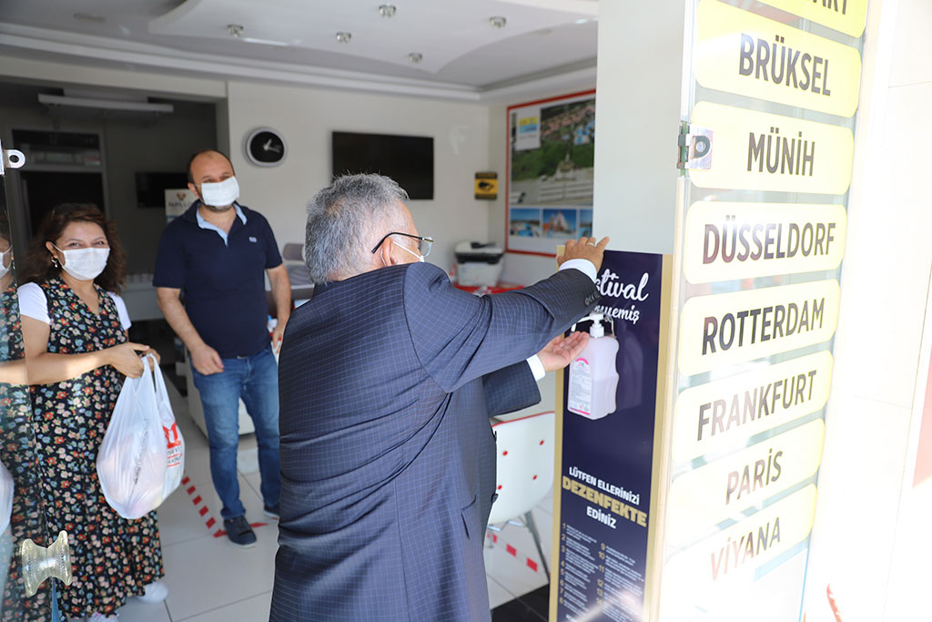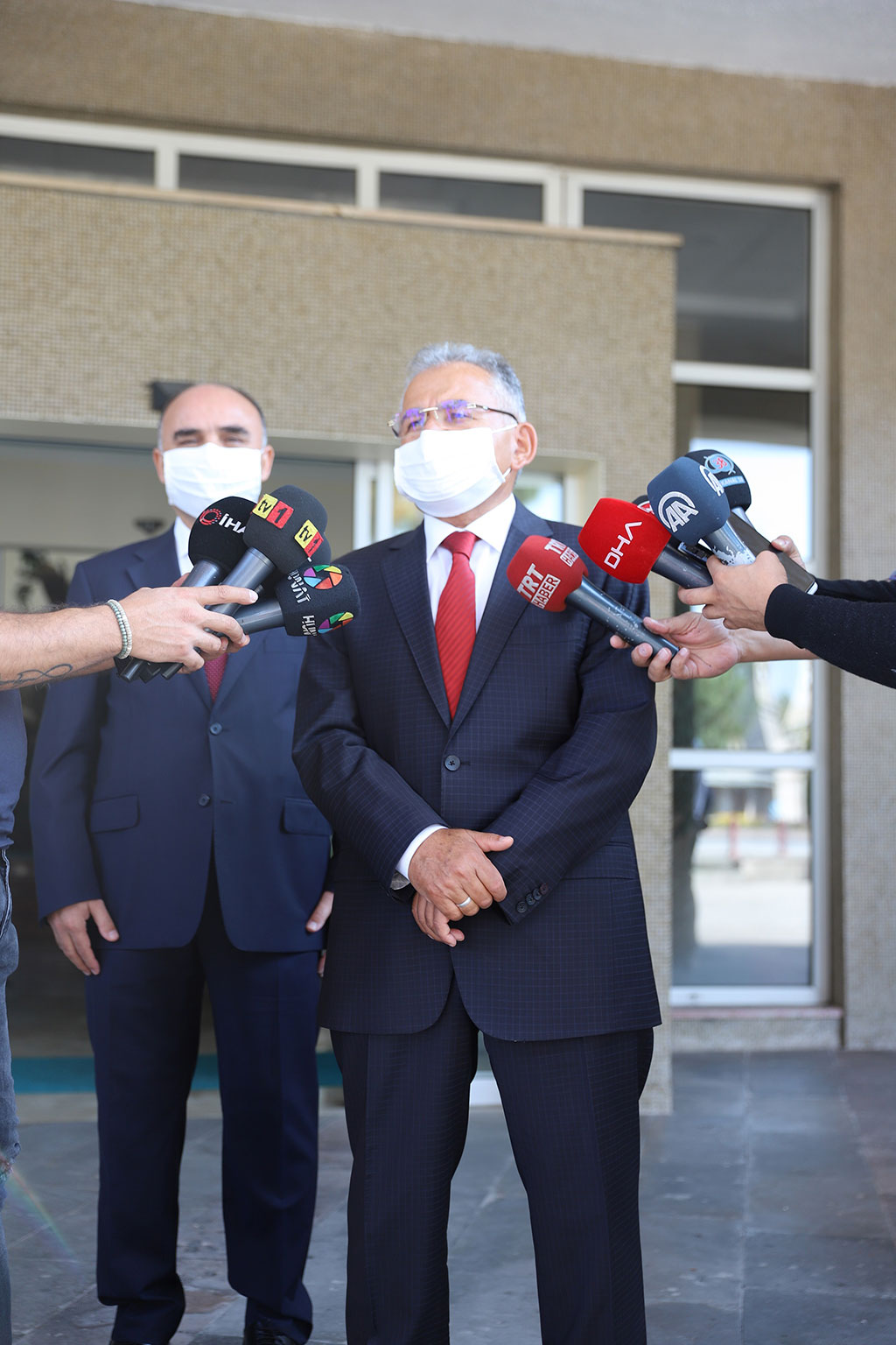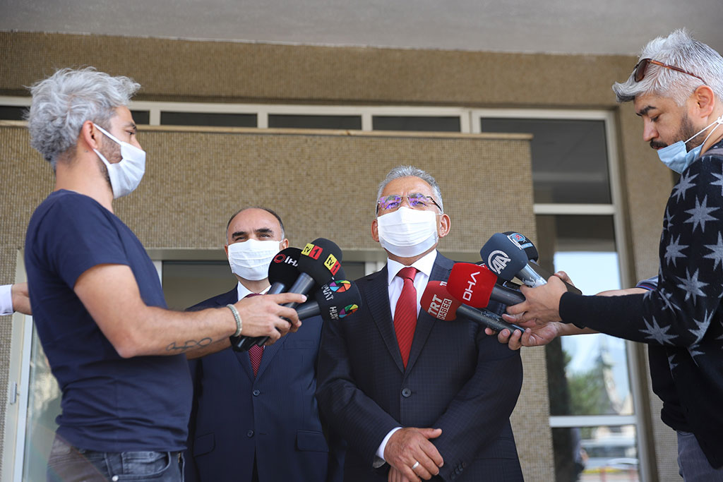 Kayseri Valisi Şehmus Günaydın ve Büyükşehir Belediye Başkanı Dr. Memduh Büyükkılıç, bir kez daha birlikte saha denetiminde bulunarak hem duyarlılık çağrısı yaptı hem esnaf ve vatandaşlara maske, mesafe ve temizlik konusunda uyarılarda bulundu. Vali Günaydın ve Başkan Büyükkılıç, gördükleri eksiklere müdahale ederken, “Birlikte başaracağız” mesajı verdiler. Şehrin yöneticileri olarak vatandaşlara örnek olup rehberlik etmek amacıyla İçişleri Bakanlığı tarafından gönderilen genelge kapsamında kent merkezinde denetimlere çıkan Vali Şehmus Günaydın ve Başkan Büyükkılıç, vatandaşlarla görüşerek, esnafların pandemi tedbirlerini yerinde gördü. Sahabiye bölgesindeki Ahmet Paşa Caddesi’nde başlayan denetimlerde tek tek esnaflarla ve vatandaşlarla konuşan Başkan Büyükkılıç, salgın süresince tedbirlere uyulması gerektiğini anlattı. Maske, Mesafe ve Temizlik kurallarının artık hayatın bir parçası olduğunu ifade eden Büyükkılıç, yapılan denetimlerde pandemi süreci hakkında hatırlatmalarda bulunmayı da ihmal etmedi. Alınan önlemlerin uygulanmadığı zaman vaka sayısında artış olduğuna dikkat çeken Başkan Büyükkılıç, “Pandemi kurulunda bu kararları saatlerce tartışırken Kayserimizin ekonomik boyutunu, sosyal boyutunu göz ardı etmeyerek kararlar alıyoruz. Aldığımız önlemler yeterince uygulanmadığı zaman vaka sayısının arttığını görüyoruz. ‘Kayseri yasaklar şehri olacak ne olur dikkat edelim’ diye açıklamam olmuştu. Nitekim bu haftadaki yapılan çalışmalar sonucunda aldığımız bazı yasaklarla ilgili tedbirleri sizlerde duydunuz. O açıdan şehrimizi seviyorsak, insanımızı seviyorsak, ne olur kurallara uyalım. Sonucunda hepimiz kazanalım. Biz üzerimize düşeni yapıyoruz, vatandaşımızda üzerlerini düşeni yaparsa kazanan hepimiz oluruz” dedi. Salgınla mücadele kapsamında yapılan denetimler ve uygulanan kararlar hakkında bilgilendirmelerde bulunan Vali Şehmus Günaydın ise, “Bizler şu ana kadar bu süreci hep birlikte yürüttük. Bundan sonra biraz daha çalışmayla gayretle inşallah önümüzdeki hafta çok daha güzel şeyleri konuşuruz” ifadelerini kullandı. Vali Günaydın ve Başkan Büyükkılıç, Cumhuriyet Meydanı’ndaki otobüs duraklarında toplu ulaşım araçlarına yönelik denetimlerde de bulundu.