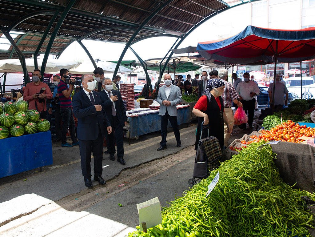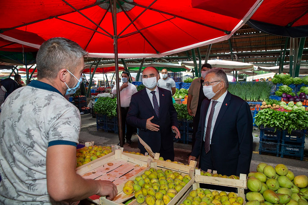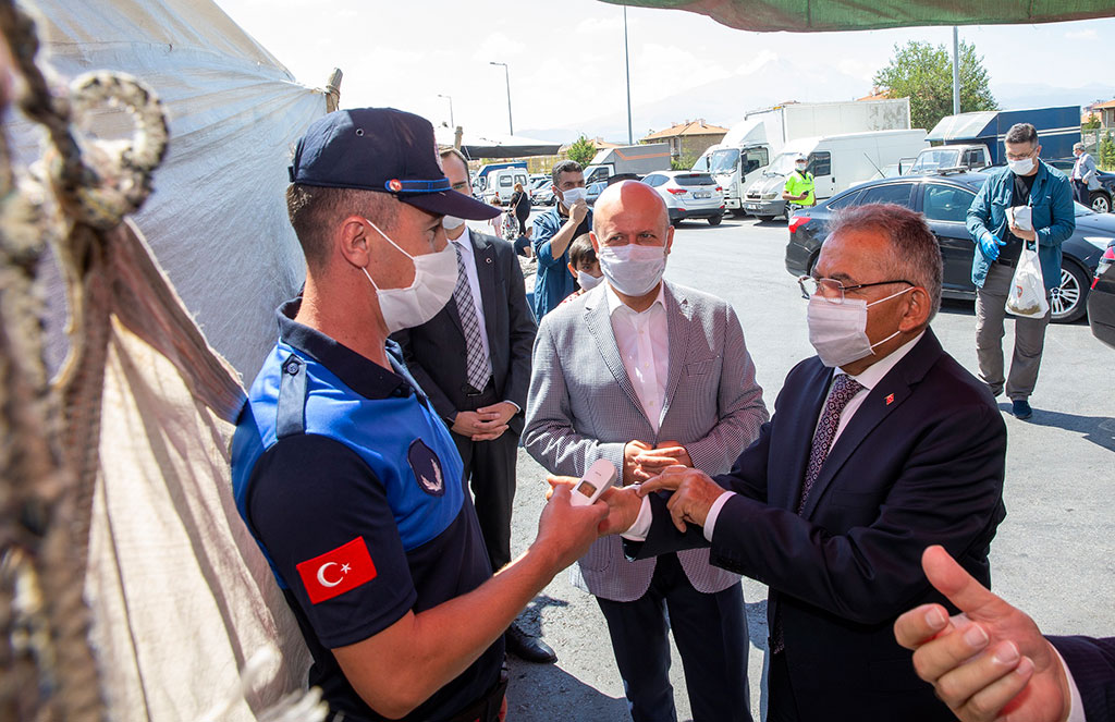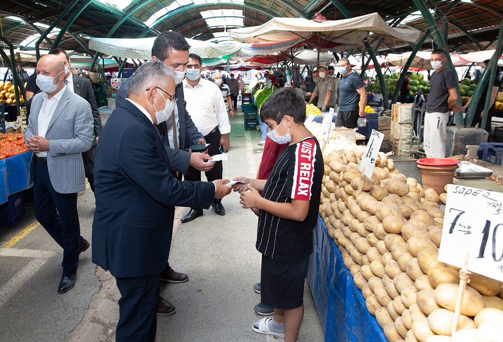 Kayseri Büyükşehir Belediye Başkanı Dr. Memduh Büyükkılıç, Vali Şehmus Günaydın ile birlikte koronavirüs tedbirleri kapsamında yapılan denetimlere katılarak esnafları ve vatandaşları maske, mesafe ve hijyen kurallarına uymaları noktasında uyardı. Vali Günaydın ve Başkan Büyükkılıç, Yeni Mahalle Semt Pazarı, Yeni Mahalle Meydanı ve Yeni Mahalle otobüsünde uyarılarda bulundu. İçişleri Bakanlığı’nın “Sağlık İçin, Hepimiz için” sloganıyla bütün illere gönderdiği genelge kapsamında tüm Türkiye ile eş zamanlı olarak illerin valilerinin, belediye başkanlarının ve yöneticilerinin katılımıyla geniş kapsamlı koronavirüs denetimlerine devam edildi. Bu kapsamda kent merkezindeki önlemleri sürekli takip eden Başkan Büyükkılıç ve Vali Günaydın, Yeni Mahalle Semt Pazarı’nda Maske, Mesafe ve Temizlik denetimleri gerçekleştirdi. Denetimde Kocasinan Belediye Başkanı Ahmet Çolakbayrakdar da Başkan Büyükkılıç’a ve Vali Şehmus Günaydın’a eşlik etti. Pazarda, vatandaşlara sık sık Covid-19 salgını mücadelesinde neler yapılması gerektiğini anlatan Başkan Büyükkılıç, Kayseri insanının kurallarına yüksek oranda uyduğunu gözlemlemenin kendisini memnun ettiğini dile getirerek, şunları kaydetti: “Kayserili hemşehrilerimiz genelde Maske, Mesafe ve Temizlik kurallarına uyuyor. Zaman zaman istisnalar söz konusu. Bizim yapmış olduğumuz uygulamalarda kimseye yaptırım uygulamak ceza yazmak, mantığı asla söz konusu değil. Olumlu olarak halkımızı yönlendirmek ve bilinçlendirmek amacındayız. Şehrimizde ya da ülkemizde hareketliliğin getirdiği bir miktar kıpırdanma söz konusu. Bizim amacımız bu kıpırdanmayı hem önlemek, hem de en aza indirmek suretiyle şehrimizin her zaman olduğu gibi güvenli bir liman olduğunun paylaşımı içerisinde bulunmak. Toplu çalışma alanlardaki kardeşlerimize teşekkür ediyorum. Kurallara uyuyorlar. Azami hassasiyet gösteriyorlar. Düğünlerde ve değişik etkinliklerde bir miktar ihmal söz konusu olabiliyor. Kurallara uyarsak, maske, mesafe ve temizliğe dikkat edersek. Zor değil. Maliyeti de yok. Buna uyduğumuz zaman hepimiz huzur içerisinde sosyal hayatımız içerisinde çalışmalarımızı sürdürürüz.” “TEDBİRİ ELDEN BIRAKMAYALIM” Tedbiri elden bırakmamanın önemine işaret eden Başkan Büyükkılıç, “Hekim olarak söylüyorum. ‘Bana bulaşmaz’ mantığı yerine ‘herkese bulaşabilir’ mantığında hareket etmemiz lazım. Büyüğümüzü, çocuğumuzu, gencimizi, geleceğimizi, ülkemizi, şehrimizi düşünerek daha dikkatli davranalım. Tedbiri elden bırakmayalım. Yeni Mahalle Pazarımızdaki, esnaf kardeşlerimize de hayırlı günler, hayırlı işler. Cenabı Allah helalinden bol rızık versin diye dua ve temennide bulunuyoruz” diye konuştu. Yeni Mahalle Semt Pazarı’ndaki denetimler sırasında açıklamalarda bulunan Vali Şehmus Günaydın da, Covid-19 salgınıyla mücadeleyi kararlılıkla yürüttüklerini ve her alanda denetimlere devam ettiklerini belirterek, “ Geçen hafta başladığımız yoğun denetimlerimize devam ediyoruz. Bizler tabi ki hep ifade ediyoruz. Yapılan denetimlerin amacı, esnafımıza, vatandaşımıza ve muhataplarımıza ceza yazmak değil. Konunun gündemde kalması için farkındalık oluşturmak için. Konunun hassasiyetini devam ettirmek için, korona virüs mücadelemizi kararlıkla yürütebilmemiz için hayatımızın her alanında bu denetimleri devam ettiriyoruz” dedi. Pazar yerinin ardından Yeni Mahalle Meydanı’na geçen Vali Günaydın ve Başkan Büyükkılıç, taksici esnafı ile meydanda bulunan diğer tüm esnafları da ziyaret ederek hem pandemi ile mücadelede hassasiyet çağrısı yaptılar hem de hayırlı işler temennisinde bulundular. Vali Günaydın ve Başkan Büyükkılıç, denetimleri sırasında meydandan geçen Yeni Mahalle otobüsüne de binerek vatandaşlarla görüştü.