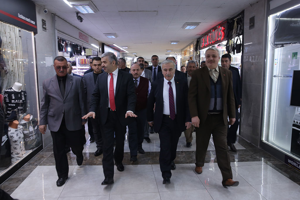 Büyükşehir Belediye Başkanı Mustafa Çelik, belediyenin zemin ve duvarlarda yaptığı çalışmayla yenilediği Yeraltı Çarşısı’nı Vali Süleyman Kamçı ile birlikte ziyaret etti. Başkan Çelik, çarşının Kayseri’nin önemli bir ekonomik değeri olduğunu söyledi. Vali Süleyman Kamçı ile Büyükşehir Belediye Başkanı Mustafa Çelik, Bürüngüz Camii’nde kıldıkları Cuma namazının ardından Yeraltı Çarşısı’nı ziyaret ettiler. Vali Kamçı ve Başkan Çelik’i Yeraltı Çarşısı Dernek Başkanı Salih Gülay ile esnaflar karşıladı. Dernek Başkanı Salih Gülay, Büyükşehir Belediyesi’nin çarşıda yaptığı çalışmalar nedeniyle teşekkür ederek, çarşının girişleri, tabanı ve duvarlarının mükemmel olduğunu söyledi. Büyükşehir Belediye Başkanı Mustafa Çelik de Yeraltı Çarşısı’nı Kayseri’nin ekonomik anlamda bir değeri olarak gördüklerini belirtti. Yeraltı çarşısının üçte ikisinin Maliye’ye, üçte birinin Büyükşehir Belediyesi’ne ait olduğunu hatırlatan Başkan Çelik, “Topladığımız kira harcadığımız paradan az; ama biz çarşıyı gelir kapısı olarak görmüyoruz. Kayseri’nin çekirdek bir çarşısı olarak görüyoruz. Bu yüzden sizden gelen talepleri elimizden geldiğince karşılıyoruz. Geçen yıl talepleriniz doğrultusunda elektrik tesisatı ve klimadaki sıkıntıları giderdik. Bu sene de zemin ve duvar kaplamalarını bitirdik. Çok şık ve Kayseri’ye yakışır bir çalışma olmuş. Çarşı adeta yenilenmiş. Sizlerden istirhamımız çarşıdaki tüm esnaflar dışarıya taşmadan kendi ticarethanesinde ticaretini yapsın” dedi. Ziyarette, Yeraltı Çarşısı Dernek Başkanı Salih Gülay, çarşıya yaptığı hizmetlerden dolayı Büyükşehir Belediye Başkanı Mustafa Çelik’e ve ziyaretin anısına Vali Süleyman Kamçı’ya plaket takdim etti.