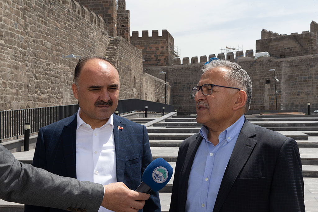 Kayseri Büyükşehir Belediye Başkanı Dr. Memduh Büyükkılıç, Vali Şehmus Günaydın ile birlikte bazı projeleri yerinde inceledi. İnceleme gezisi Kayseri Kalesi ile başladı. Başkan Büyükkılıç, kale içindeki çalışmaların yaz döneminde tamamlanacağını açıkladı. Büyükşehir Belediye Başkanı Memduh Büyükkılıç, Vali Şehmus Günaydın ile birlikte 1 Mayıs Emek ve Dayanışma Günü’nde bir dizi incelemelerde bulundu. Vali Günaydın ve Başkan Büyükkılıç’ın inceleme gezisi Kayseri Kalesi ile başladı. Kale içinde yapılan restorasyon çalışmalarını yerinde gören ve çalışmaların son durumuna ilişkin bilgi alan Başkan Büyükkılıç ve Vali Günaydın, kale içine yapılan Arkeoloji Müzesi’ni de gezdiler. İncelemeler sonrası bir açıklama yapan Büyükşehir Belediye Başkanı Memduh Büyükkılıç, Arkeoloji Müzesi’nin taşınma sürecinde sona gelindiğini açıkladı. Müzenin en kısa zamanda taşınacağını ifade eden Başkan Büyükkılıç, “Restorasyon çalışmaları da üç ay içinde tamamlanarak kale içi halkımızın hizmetine girecek. Şehrimize hayırlı uğurlu olsun. Kayseri’nin simgesi olan kalemizde çalışmaların sonuna geldik” dedi. Vali Şehmus Günaydın da yaptığı açıklama, şehrimizin binlerce yıllık tarihinden gelen eserlerin gelecek nesillere aktarılması ve turizm değeri olarak ele alınması için kalenin restorasyonu ve müze çalışmasının çok önemli olduğunu söyledi. Kalenin birkaç ay içinde turizme kazandırılacağını ifade eden Vali Günaydın, çalışmalar nedeniyle Başkan Memduh Büyükkılıç’a teşekkür etti. Vali Şehmus Günaydın ve Başkan Memduh Büyükkılıç, Kayseri Kalesi’nin ardından Eski Doğumevi, İl Kültür ve Turizm Müdürlüğü Kültür Merkezi, Eski Arkeoloji Müzesi ve Seyyid Burhaneddin Türbesi ve çevresinde incelemelerde bulundular.