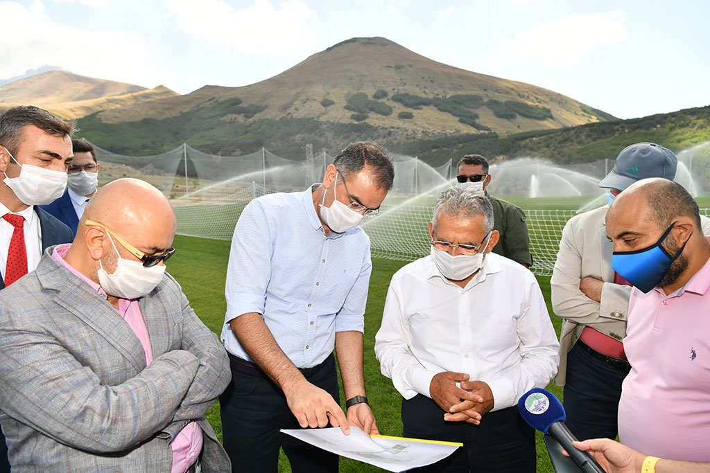 Kayseri’yi bağrına yaslayan Erciyes’te bir rüya daha gerçek oldu. Kayseri Büyükşehir Belediye Başkanı Dr. Memduh Büyükkılıç, uluslararası takımların da kamp yapacağı Yüksek İrtifa Kamp Merkezi’ndeki 2 sahanın tamamlandığını ve FİFA standartlarındaki sahaların başta Süper Lig ekipleri olmak üzere dünya yıldızı takımları 20 Ağustos’tan itibaren ağırlamaya başlayacağını açıkladı. Başkan Büyükkılıç, “Erciyes’imizi çok yönlü olarak 12 ay boyunca değerlendirecek konum ve duruma getirmek şehrimiz adına kazanım olacaktır” dedi. Büyükşehir Belediye Başkanı Dr. Memduh Büyükkılıç, kurmaylarıyla birlikte Erciyes’te yapımı tamamlanan Yüksek İrtifa Kamp Merkezi’nde incelemelerde bulundu. Başkan Büyükkılıç’ın talimatıyla Büyükşehir Belediyesi imkânlarıyla yapımı tamamlanan ve kamp yapmaya hazır hale getirilen FİFA standartlarındaki 2 adet saha, Erciyes’in 12 ay boyunca değerlendirilmesine yönelik çalışmaların dönüm noktasını oluşturuyor. Yine Başkan Büyükkılıç’ın Gençlik ve Spor Bakanı Mehmet Muharrem Kasapoğlu ile yaptığı görüşmeler sonucunda Bakanlık tarafından yaptırılacak 6 adet sahanın da tamamlanmasıyla Erciyes, Yüksek İrtifa Kamp Merkezi olarak dünyaca tanınan ve tercih edilen bir yer haline gelecek. Bilimsel çalışmaların ışığında 1860 metre rakımda konuşlandırılan Yüksek İrtifa Kamp Merkezi’nde kullanıma hazır hale getirilen sahalarda incelemelerde bulunan ve yemyeşil çim sahada ilk topa vuran Başkan Büyükkılıç, Erciyes için çok önemli ve stratejik bir yatırım olan Yüksek İrtifa Kamp Merkezi'ndeki 2 adet sahanın tamamlanmasının mutluluğunu yaşadıklarını belirtti. Erciyes Yüksek İrtifa Merkezi’nin Kayseri için önemli bir kazanım olacağını dile getiren Başkan Büyükkılıç, “Kayseri’nin markası olan Erciyes Dağımız sadece kış turizmin merkezi olarak değil, 12 ay boyunca adından söz ettirmeye başladı. Erciyes Master Planı çerçevesinde planlanan Yüksek İrtifa Kamp Merkezimiz ’de yapımı tamamlanan 2 saha dışında 6 saha daha yapıyoruz. Ayrıca, salon sporları için kapalı spor salonunun da talimatını verdik. Olimpik niteliğinde. Kompleks mantığı içerisinde yükseklik itibariyle 1800-2000 rakım yükseklik var. Araştırmalar onu gösteriyor. Erciyes bizi bağrına basıyor. Sağlıklı olmak istiyorsanız, kamp yapmak istiyorsanız, buyurun gelin. Bu anlayış içerisinde Gençlik Spor Bakanlığımıza teşekkür ediyoruz. Onlarda bizden desteklerini esirgemiyorlar ki, zaten son süreçte de Sayın Cumhurbaşkanımızın bizlere sahip çıkma kaygısıyla Gençlik Spor Bakanlığımızın destekleriyle Kayserisporumuz da hak ettiği yerde kaldı. Şehrimiz adına bir bakıma kazanım oldu. Bu şehre Süper Lig’deki bir takım yüzde 500 yakışır. Onu da gözbebeğimiz gibi korumamız lazım. Buradan büyük takımları, ulusal standart olan sahalardan yararlanması ve dışarıdakilere imkân sağlayıp, katma değer sağlanması. Şehrimize kazanım sağlanması çok önemli.” dedi. “DURMAK YOK, KOŞMAYA DEVAM” Kayseri’nin sporda, kültürde, sanatta, bilimde ve diğer alanlarda da alt yapıların güçlü olmasına özen gösterdiklerini ifade eden Büyükkılıç, konuşmasına şöyle devam etti: “Erciyes’imizi sadece kayak merkezi zannedip, dört aya sığdırmamız gerekiyor. 12 ay boyunca değerlendirecek konum ve duruma getirmek şehrimiz adına kazanım olacaktır. Ekibimize teşekkür ediyorum. Yüklenici firmalarımıza teşekkür ediyorum. İnşallah durmak yok, koşmaya devam mantığı içerisinde diğer altı sahayı tamamlayıp burayı bir cazibe merkezi haline getireceğimizi belirtmek istiyorum” Uluslararası futbol kampları alanında 25 yıldan bu yana sektörde bulunan Serkan Çeri de, Erciyes Yüksek İrtifa Kamp Merkezi’nin uluslararası alanda ilgi görmeye şimdiden başladığını anlatarak, yeri ve konumu çok iyi ayarlanmış sahaların Süper Lig ekipleri başta olmak üzere dünya yıldızı takımların tercih edeceği bir merkez haline geleceğini vurguladı. FİFA STANDARTLARINDA SAHALAR Erciyes Yüksek İrtifa Kamp Merkezi’ndeki sahalar 110x70 ölçülerinde FİFA standartlarına göre yapıldı. 4 futbol takımına hizmet verecek içerisinde duşlar ve şok havuzlarının da bulunduğu soyunma birimlerinin yanı sıra 200 metrekare fitness salonu da merkezde hazır hale getirildi. 1860 metre rakımdaki sahalarda canlı yayın platformu, paratonerler, yedek kulübeleri gibi tüm detaylar en ince ayrıntısına kadar düşünüldü. Teknik birimlerin de bulunduğu komplekse Başkan Büyükkılıç’ın talimatıyla salon sporları takımlarının da kamp yapmasına imkan sağlamak amacıyla kapalı spor salonu da yapılacak.