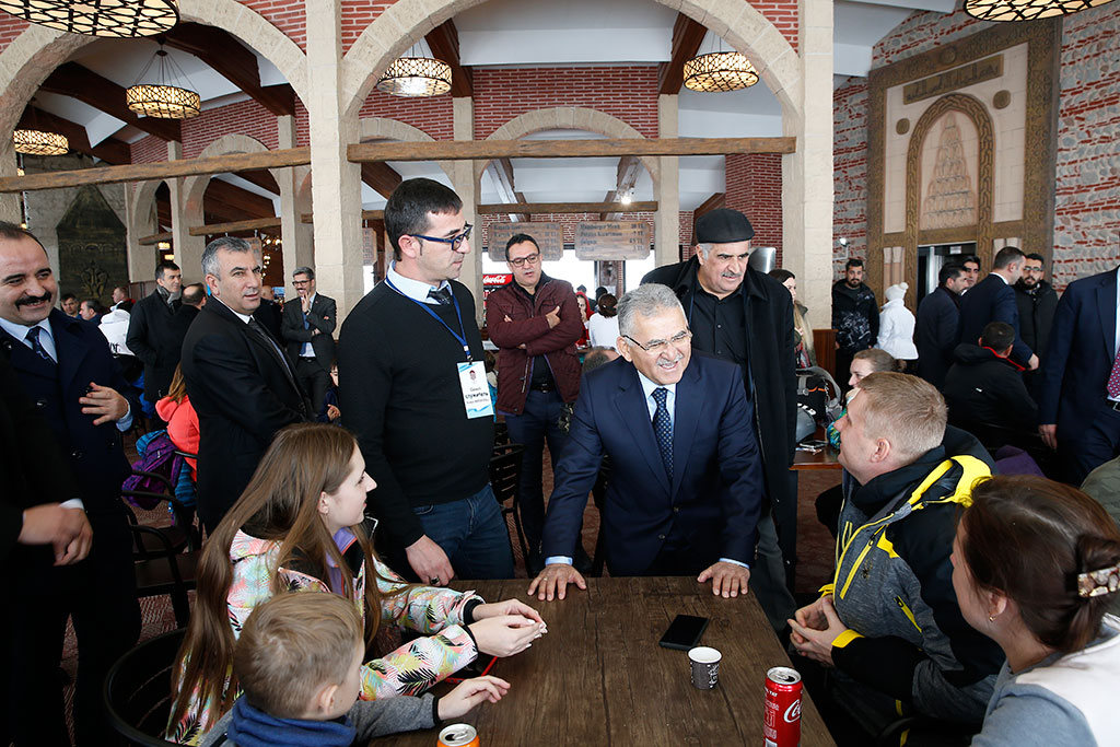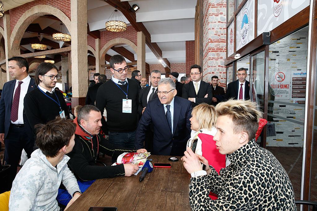 Kayseri Büyükşehir Belediye Başkanı Dr. Memduh Büyükkılıç, Erciyes’e gelen yabancı turistlerle görüştü. Başkan Büyükkılıç, Başkan Büyükkılıç, 20 günde Kayseri’ye dört ülkeden 13 charter sefer yapıldığını ve İstanbul aktarmalı olarak da çok sayıda yabancı turistin Erciyes’e geldiğini söyledi. Büyükşehir Belediye Başkanı Dr. Memduh Büyükkılıç, Erciyes’e farklı ülkelerden gelen yabancı turistlerle görüşerek Erciyes ve Kayseri ile ilgili görüşlerini sordu. Büyükşehir Belediye Başkanı Memduh Büyükkılıç, görüştüğü misafirlere Kayseri’yi tercih sebepleri, hangi yolla Erciyes’i öğrendikleri ve Kayseri mutfağını nasıl buldukları ile ilgili sorular yöneltti. Başkan Büyükkılıç ile tanışmaktan duydukları memnuniyeti dile getiren misafirler, Erciyes’in mekanik tesisleri ve pistlerini çok beğendiklerini, Kayseri’ye ve Kayseri mutfağına hayran kaldıklarını belirttiler. Büyükşehir Belediye Başkanı Dr. Memduh Büyükkılıç, Erciyes’e charter seferlerle yabancı turistlerin gelmeye devam ettiğini söyledi. 20 Aralık’ta başlayan charter seferler kapsamında Rusya, Ukrayna, Polonya ve Belarus’tan bugüne kadar 13 uçağın Kayseri’ye geldiğini dile getiren Başkan Memduh Büyükkılıç, kış sezonu boyunca charter seferlerin devam edeceğini belirtti. Büyükşehir Belediye Başkanı Büyükkılıç, Erciyes’e sadece charter seferlerle değil İstanbul aktarmalı olarak da dünyanın pek çok ülkesinden turistlerin geldiğini sözlerine ekledi.