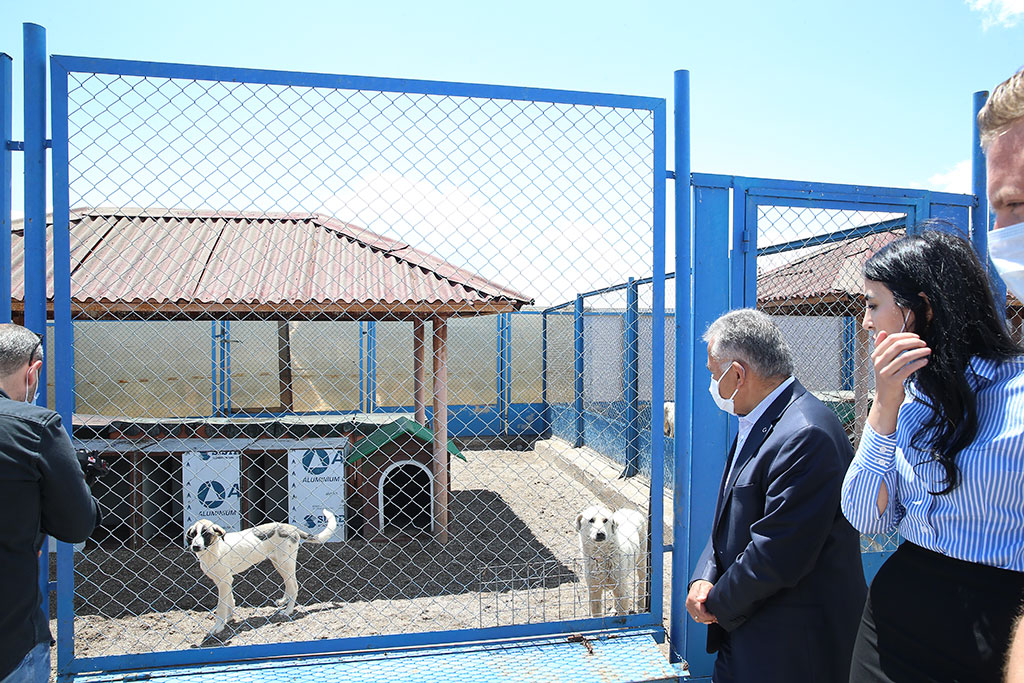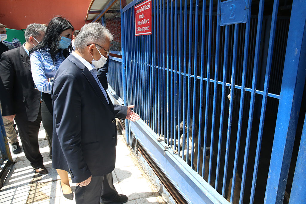 Kayseri Büyükşehir Belediye Başkanı Dr. Memduh Büyükkılıç, başarılı çalışmaları ile Türkiye genelinde ilk 3’te yer alan belediye bünyesindeki Köpek Barınma Evi’nde incelemelerde bulunarak, “Yaradılışa merhamet ve şefkat anlayışı güderek canlarımıza destek veriyoruz ve onların sahipsiz olmadığını paylaşmak istiyoruz” dedi. Başkan Büyükkılıç, beraberinde Genel Sekreter Yardımcısı Bayar Özsoy ve Çevre Koruma Kontrol Daire Başkanı Buket Ergin ile birlikte geldiği Molu’daki Köpek Barınma Evi’nde incelemelerde bulunarak, veteriner hekimlerden bilgi aldı. Yeni normal hayata dönüşte sahipsiz hayvanları da unutmayan Başkan Büyükkılıç, sevimli dostlarla yakından ilgilenip yavruları sevdi. Başkan Büyükkılıç, burada yaptığı açıklamada, sokağa çıkma kısıtlamalarında bile ‘yaradılışa merhamet ve şefkat anlayışı’ içerisinde canlara sahip çıktıklarını ifade ederek, “800 kapasiteli tesisimizde 350 bakıma muhtaç köpeğimizi ve yavrularını 24 saat boyunca üzerine titreyerek bakıyoruz. Küpe takma ve kısırlaştırma işlemlerini de yaparak sahip çıkıyoruz” dedi. Bu hizmetin sadece belediyenin hizmeti olmaması gerektiğini söyleyen Başkan Büyükkılıç, şöyle devam etti: Toplumumuzun da sahipsiz canlara sahip çıkmasını sağlamak, onlarla bu işi sürdürmek doğru olanıdır. Bu anlamda saat 13.00 ile 15.00 saatleri arasında ziyaret etmek isteyenlere fırsat veriyoruz. İlçe belediyelerimizin getirdiği, burada bizim hizmetleri verdiğimiz canları tüm bakımları yapılarak dileyen vatandaşlarımıza veriyoruz. Çok şükür Kayseri’de bu anlamda Türkiye’de ilk üç içerisinde. Çok güzel bir bölgede kurulan Köpek Barınma Evi’nde yavru, yetişkin ve tehlikeli köpeklerin yanı sıra engelli dostlarımız da bulunuyor. Araç çarpması ya da değişik nedenlerle yaralanan sevimli dostlarımızın tüm tedavileri eksiksiz yapılıyor”