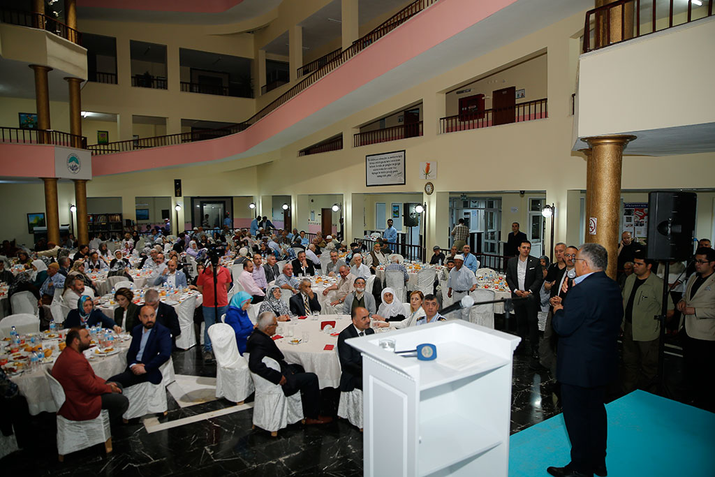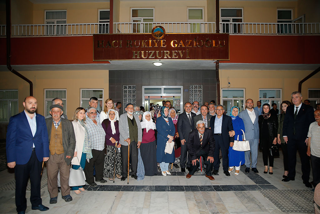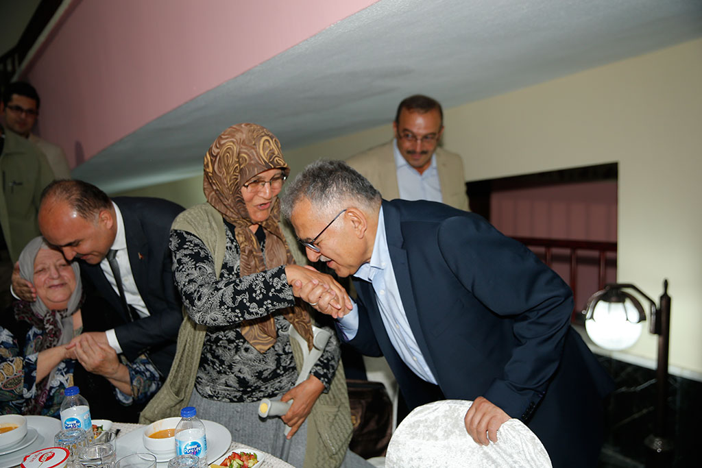 Kayseri Büyükşehir Belediye Başkanı Dr. Memduh Büyükkılıç, Büyükşehir Belediyesi Hacı Rukiye Gazioğlu Huzurevi’nde düzenlenen iftara Vali Şehmus Günaydın ile birlikte katıldı. Başkan Büyükkılıç, iftarda yaptığı konuşmada yaşlılarımızın dualarıyla bereketin kaynağı olduğunu belirtti. Huzurevi’nde gerçekleştirilen iftara Büyükşehir Belediye Başkanı Memduh Büyükkılıç ve eşi Necmiye Büyükkılıç’ın yanı sıra Vali Şehmus Günaydın, AK Parti Kayseri Milletvekili Hülya Nergis, Garnizon Komutanı Tuğgeneral Ercan Teke, MHP İl Başkanı Serkan Tok, oda ve dernek başkanları ile bürokratlar katıldı. İftarda Huzurevi’nde yaşayan yaşlılarımız adına bir konuşma yapıldı ve “İnsanların insan gibi yaşadığı bu mekana hoş geldiniz. Havı Rukiye Gazioğlu Huzurevi Türkiye’de tek” ifadeleri kullanıldı. Büyükşehir Belediye Başkanı Memduh Büyükkılıç da konuşmasında, yaşlılarımızın dualarıyla bereketin kaynağı olduğunu belirtti. Yaşlılarımızın birlik beraberliğimize de katkıları olduğunu vurgulayan Başkan Büyükkılıç, “İyi ki varsınız. Sizler bizim başımızın tacısınız. Ufak tefek hatalarımız varsa haklarınızı helal edin. Sizler bizim bereketimizsiniz. Bizim birlik beraberliğimizi, kardeşliğimizi sağlayan sizlerin duaları. İnşallah bu birlikteliğimiz devam eder” dedi. Kayseri Milletvekili Hülya Nergis de konuşmasında her zaman yaşlılarımızın dualarına ihtiyacımız olduğunu vurguladı. Vali Şehmus Günaydın da en büyük güç kaynağımızın yaşlılarımızın duaları olduğunu dile getirdi. Huzurevi’ndeki hayatla ilgili yaşlılarımızdan her zaman güzel sözler duyduklarını da ifade eden Başkan Büyükkılıç, “Bu sözlerden buradaki arkadaşlarımızın çok güzel hizmet yaptığını görüyoruz. Bu nedenle tüm çalışanlara teşekkür ediyoruz” dedi.