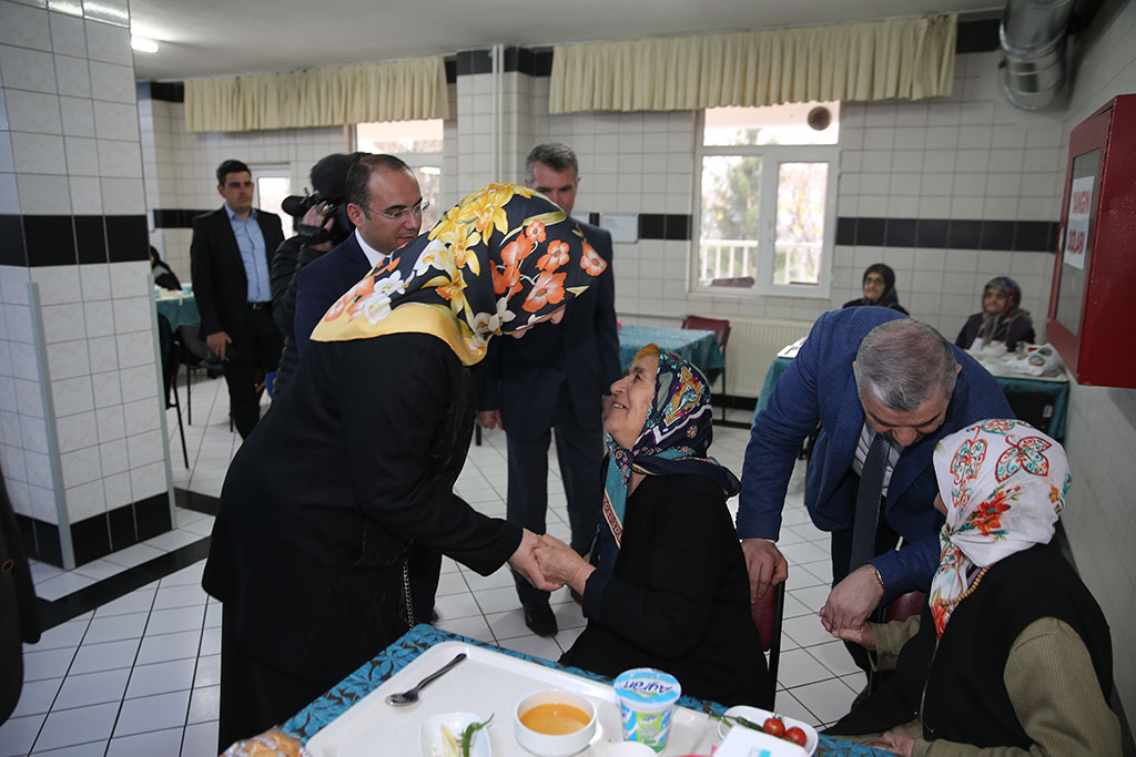 Büyükşehir Belediye Başkanı Mustafa Çelik, eşi İkbal Çelik ile birlikte Regaib Gecesi’nde Huzurevi’ndeki yaşlılarımızı ziyaret etti. Uzun süre kaldığı Huzurevi’nde tek tek tüm yaşlılarla ilgilenen Başkan Mustafa Çelik, yaşlılarımızın duasının en büyük güç kaynağı olduğunu belirtti ve bu dualarla huzurumuzun arttığını dile getirdi. Büyükşehir Belediye Başkanı Mustafa Çelik, eşi İkbal Çelik ile birlikte Yaşlılar Haftası ve Regaib Gecesi’nde anlamlı bir ziyarette bulundu. Huzurevi’ni ziyaret eden Başkan Çelik ve eşi İkbal Çelik, tüm yaşlılarla tek tek selamlaştı. Yaşlılarımızın Regaib Kandili’ni tebrik eden, el öpen, hatır soran Başkan Çelik ve eşi İkbal Çelik, yaşlılarımızla sohbet etti ve yakından ilgilendi. “DUALARINIZLA HUZURUMUZ ARTIYOR” Huzurevi’nde kalan yaşlılarımıza hitap eden Büyükşehir Belediye Başkanı Çelik, Regaib Kandili’ni ve Yaşlılar Haftası’nı tebrik etti. Yaşlılarımıza yapılan hizmetin önemini vurgulayan Başkan Çelik, “Ulaşım, temizlik, imar gibi birçok konuda hizmet veriyoruz; ancak bu hizmetlerden çok daha fazla yaşlılarımıza verdiğimiz hizmeti önemsiyoruz. Sizlerin hayır duasıyla belediyemizin bereketlendiğini düşünüyoruz. Daha dün yaptığımız hizmetleri gazeteci arkadaşlarla paylaşmak için bir dizi program yaptık. Kayseri’de 500 milyonluk liralık ulaşımla ilgili yatırım yapabiliyorsak, bunun bereketinin altında tabii ki sizlerin duaları var. Sizlerin dualarıyla bu şehir bereketleniyor. Sizlerin dualarıyla bu şehirde yaşayanların mutluluğu ve huzuru artıyor. Sizlerin öpülesi ellerinizden öpüyor ve sizlerle birlikte oluyoruz. Rabbim bizlere hayırlı hizmet verdiği müddetçe, Mustafa ve İkbal evladınız her zaman sizlerin yanınızda olacak. Sizlere hizmet etmeye devam edeceğiz” dedi. Büyükşehir Belediye Başkanı Mustafa Çelik, eşi İkbal Çelik ile birlikte Huzurevi’nde kalan tüm yaşlılara üzerinde her birisinin isminin yazdığı havlu hediye etti. Hediyenin üzerinde ise “Sevgiyle, saygıyla, hürmetle ellerinizden öpüyoruz. Evlatlarınız Mustafa ve İkbal Çelik” notu yer aldı. Büyükşehir Belediye Başkanı Çelik, daha sonra yaşlılarımızla birlikte dua etti ve ardından tek tek yaşlılarımızın kaldığı odaları da ziyaret etti. Odalarda kalan yaşlılarımızla sohbet eden ve hal hatır soran Başkan Çelik, her zaman yanlarında olacaklarını yineledi.
