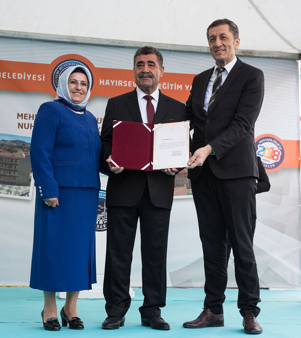 Açılış ve temel atma törenlerine katılmak üzere şehrimize gelen Milli Eğitim Bakanı Ziya Selçuk, Sahabiye Kentsel Dönüşüm Projesi kapsamında Yeni Sahabiye’nin modern yüzüne yakışır bir şekilde hayırsever iş adamı Mehmet İlgü tarafından yaptırılan Mehmet İlgü İlkokulu ve Büyükşehir Belediyesi olarak Nuh Mehmet Küçükçalık Anadolu Lisesi’ne yapılan Spor Salonu’nun tanıtım programına katıldı. YAPILANLARI GÖRÜNCE İNSANIN KAYSERİLİ OLASI GELİYOR Büyükşehir Belediyesi’nin Sahabiye Kentsel Dönüşüm Projesi içinde yapılan Mehmet İlgü İlkokulu ve Nuh Mehmet Küçükçalık Anadolu Lisesi’ne yapılan Spor Salonu’nun tanıtım programında konuşan Milli Eğitim Bakanı Ziya Selçuk, “Başkanımızın anlattıklarına bakarak insanın Kayserili olası geliyor. Gerçekten şehrinizle ne kadar övünseniz azdır. Türkiyenin hemen hemen bütün şehirlerini dolaşıyoruz. Kayseri kadar hayırseverlerinin güçlü olduğu Kayseri kadar eğitime önem veren şehir inanın çok az. Bu şehrin kıymetini çok iyi bilmek gerekiyor” dedi. Milli Eğitim Bakanlığının eğitim sisteminde yapacağı çalışmalara da değinen Bakan Selçuk, “Bugün İlgü ailesinin günü. Asıl onları konuşmak lazım. Mehmet Bey gibi hayırsever, bu binaları dikerek Türkiye’nin geleceğini imar ve inşa ediyorlar. Geçmişte yaptıkları hayırları Allah kabul etsin. Birçok zengin var ama Allah kısmet etmiyor. İlgü ailesinin gönlü zengin. Bu binada emeği geçen hayır işlerini yapan yönlendiren herkese teşekkür ediyorum” şeklinde konuştu. HAYIRSEVERLERİMİZİN VARLIKLARIYLA GURUR DUYUYORUZ Kayseri’de güzel şeyler oluyor. Kamusuyla, özel sektörüyle, belediyeleri ve hayırseverleriyle bu şehri çok daha güzel bir şehir haline getirmenin, daha konforlu bir kent yapmanın gayreti içinde olduklarını belirten Büyükşehir Belediye Başkanı Mustafa Çelik, “Varlıkları ile gurur duyduğumuz Kayserili hayırseverlerimiz ve faydalı her işe omuz veren kurumlarımızla birlikte şehrimizdeki eğitimin kalitesini artırmak için bugüne kadar elbirliği ile çalıştık, çalışıyoruz ve çalışacağız” dedi. Kayseri’de hayırsecverliğin önemine vurgu yapan Başkan Çelik, “Kayseri öyle bir şehirdir ki, “Paran kadar değil, hayrın kadar konuş” gibi ulvi bir söz bu topraklarda doğmuştur. Hayırseverliliği ile hepimizin gönlünde taht kuran Merhum Kadir Has Amcamız, “Biz buraya, yaptığımız bağışlarla övünmeye değil, doğduğumuz toprakla ödeşmeye geldik” sözünü bu topraklarda söylemiştir. Rahmetli Hemşehrimiz Kemal Dedeman’ın dediği gibi Kayseri’nin Yakınmayan Yekinen insanları başta eğitim olmak üzere devletimizin ve milletimizin ihtiyaç duyduğu her yerde var olmuşlardır ve olmaya da devam etmektedir. Zor süreçte bile altı ayda bu okulu yapıp devletimize teslim edebilen bir şehirdir. Okulumuzu yaptıran değerli İş Adamımız Mehmet İlgü de bu hayırseverlerimizden birisidir. Mülkiyeti Maliye Hazinesine kayıtlı ve Milli Eğitim Bakanlığı’na tahsisli olan bu okulun yerine Büyükşehir Belediyemize ait bu arsaya Hayırseverimiz Mehmet İlgü tarafından 36 derslikli modern bir okul yapıldı. Hayırseverimizin yaklaşık 11 milyon TL harcadığı okulumuzda 4 adet laboratuvar, kapalı spor salonu, yönetici odaları ve kütüphane gibi birimler yer alıyor. 6 bin 600 m2 inşaat alanına sahip okulumuzun şu anki bahçe alanı, kentsel dönüşüm projesinin ilerleyen etaplarında büyütülüp daha ferah hale getirilecek. Öğrencilerimizin 6 dönümlük büyük bir bahçesi olacak. Okulumuz daha önce de ifade ettiğim gibi hayırseverimizin hiçbir fedakarlıktan kaçınmaması neticesinde ülkemizin en modern okullarından birisi oldu. Okulumuzda sınıf ve koridorlarda kat yüksekliği 4 metre. Ayrıca diğer okullar karanlık koridor ve her iki yanlı çift sınıftan oluşurken okulumuz koridorun tek tarafındaki sınıflardan oluşuyor. Dolayısıyla çocuklarımız son derece ferah bir okulda eğitim görecekler. Mehmet İlgü İlkokulumuzun hayırlı nesiller yetişmesine katkı vermesini Rabbimden diliyorum” şeklinde konuştu. Tanıtım törenine katılan Sanayi, Ticaret, Enerji, Tabii Kaynaklar, Bilgi ve Teknoloji Komisyonu Başkanı ve Kayseri Milletvekili Mustafa Elitaş da konuşmasında Kayseri’de büyüyüp ticaret hayatını devam ettirenlerin bu topraklara teşekkürlerini sunmak için çalıştıklarını belirtti. Kayseri’deki hayırseverlik kültürüne değinen Kayseri Milletvekili Mustafa Elitaş, “Erciyes üniversitesindeki binaların yüzde sekseni hayırseverler tarafından yapılmıştır. Allah uzun ömür versin hakkını teslim etmek gerekir Mehmet Şahin Bey’in Erciyes üniversitesi rektörü olduğu dönemde üniversiteye yapılan hayırseverlik işleri katlayarak devam etmiştir. Değerli sanayicilerimizin birbirleri ile hayırda yaptıkları yarış önemli bir hadise. Biz de dua ediyoruz. İkinci üçüncü nesiller olarak büyüklerimizin çizdiği yoldan bizim yavrularımız da aynı şekilde devam eder şehri ile ödeşen insanlar oluruz” dedi. Konuşmaların ardında Mehmet İlgü İlkokulunu gezen Milli Eğitim Bakanı Ziya Selçuk sınıfları gezerek öğrencilerle birlikte oldu.