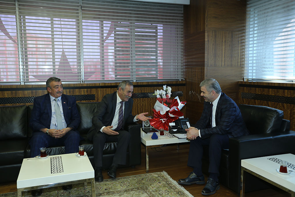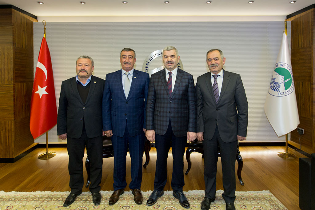Büyükşehir Belediye Başkanı Mustafa Çelik’i ziyaret eden Yeşilhisar heyetinde AK Parti Yeşilhisar İlçe Başkanı Mustafa Konak, MHP Yeşilhisar İlçe Başkanı Yahya Sümer ve Yeşilhisar Ziraat Odası Başkanı Metin Altıparmak yer aldı.