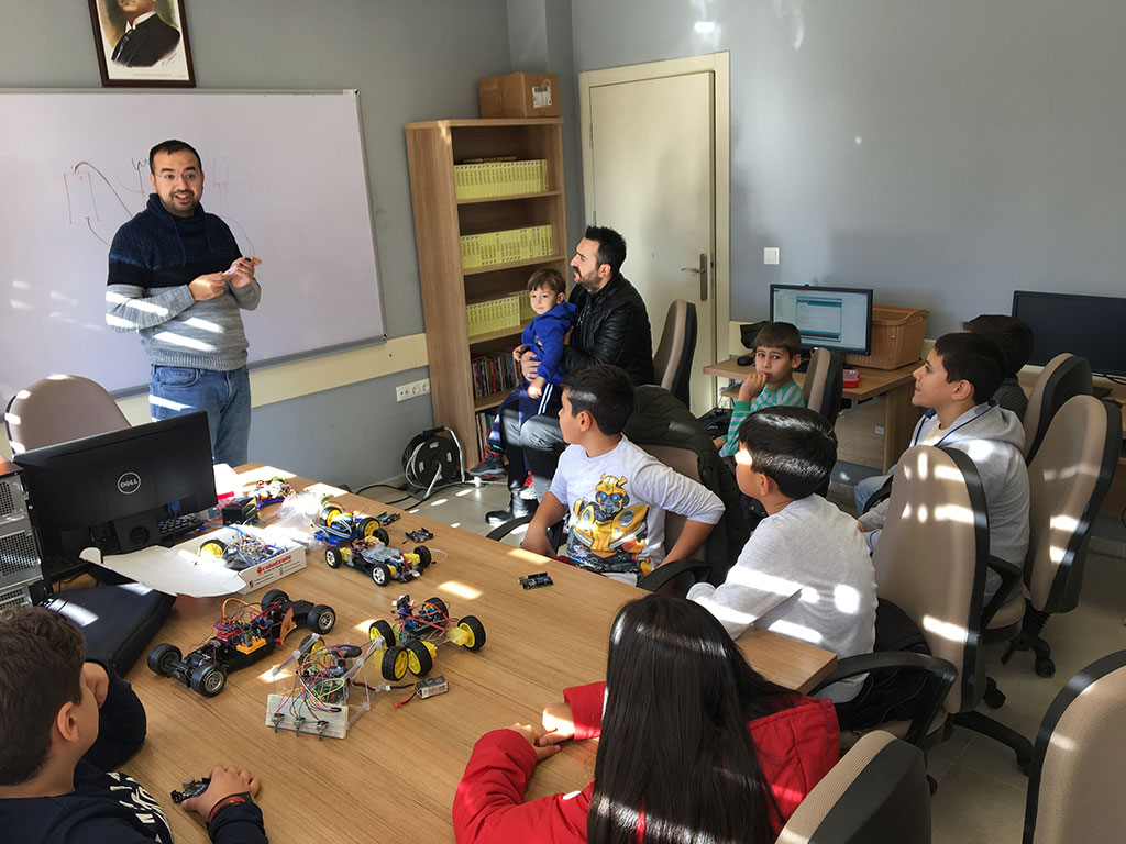 Kayseri Büyükşehir Belediyesi’nin ilçelere kazandırdığı kadın ve gençlik merkezleri önemli faaliyetlere imza atmaya devam ediyor. Yeşilhisar Kadın ve Gençlik Merkezi’nde Şehit Kübra Doğanay Fen Lisesi ile birlikte Arduino Kodlama Şenliğini gerçekleştirildi. Yeşilhisar Kadın ve Gençlik Merkezi ile Şehit Kübra Doğanay Fen Lisesi tarafından bu yıl ilki yapılan Arduino Kodlama Şenliği’nin ilk gününe 60’a yakın öğrenci katıldı. Şenliğe katılan öğrenciler dijital metre, çizgi izleyen robot, denge robotu, bahçe sulama sistemi, bluetooth kontrollü araç, ses komutlu robot, engelden kaçan robot gibi uygulamaları yaparak keyifli vakit geçirdiler. Verilen eğitimlerde öğrencilerin Arduino dünyası ile tanışmaları, farklı basit arduino uygulamaları ile elektronik tasarım ve programlama yöntemlerini anlamaları sağlanıyor. Şenlik 22 Aralık Cumartesi günü de devam edecek.