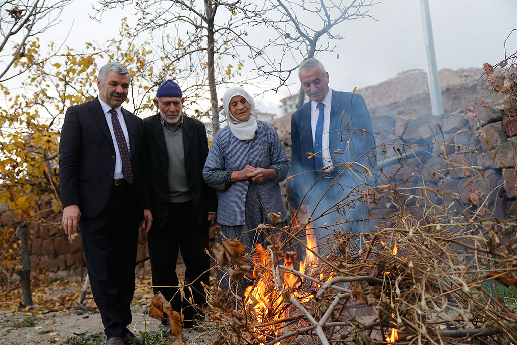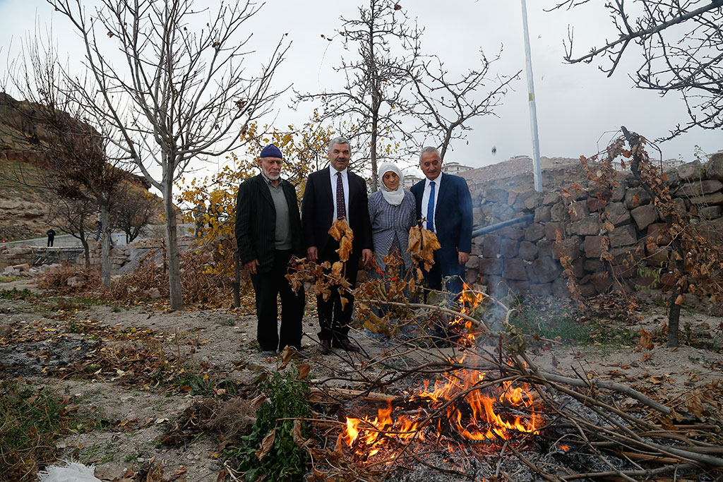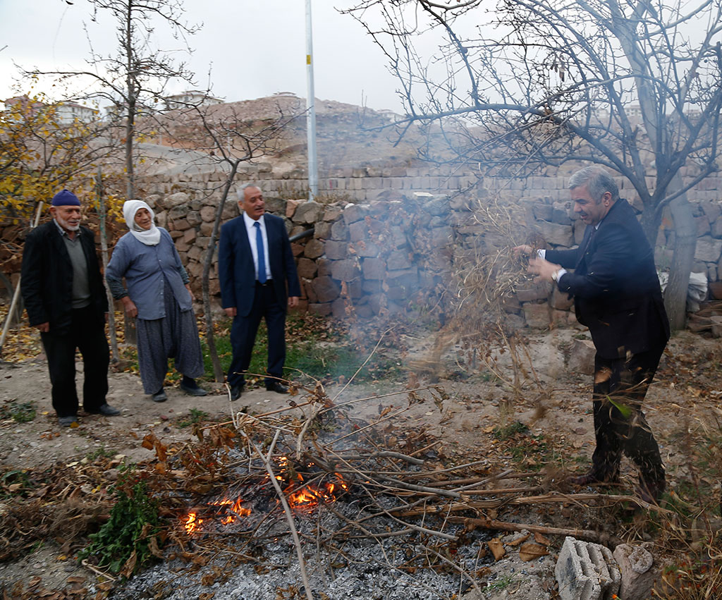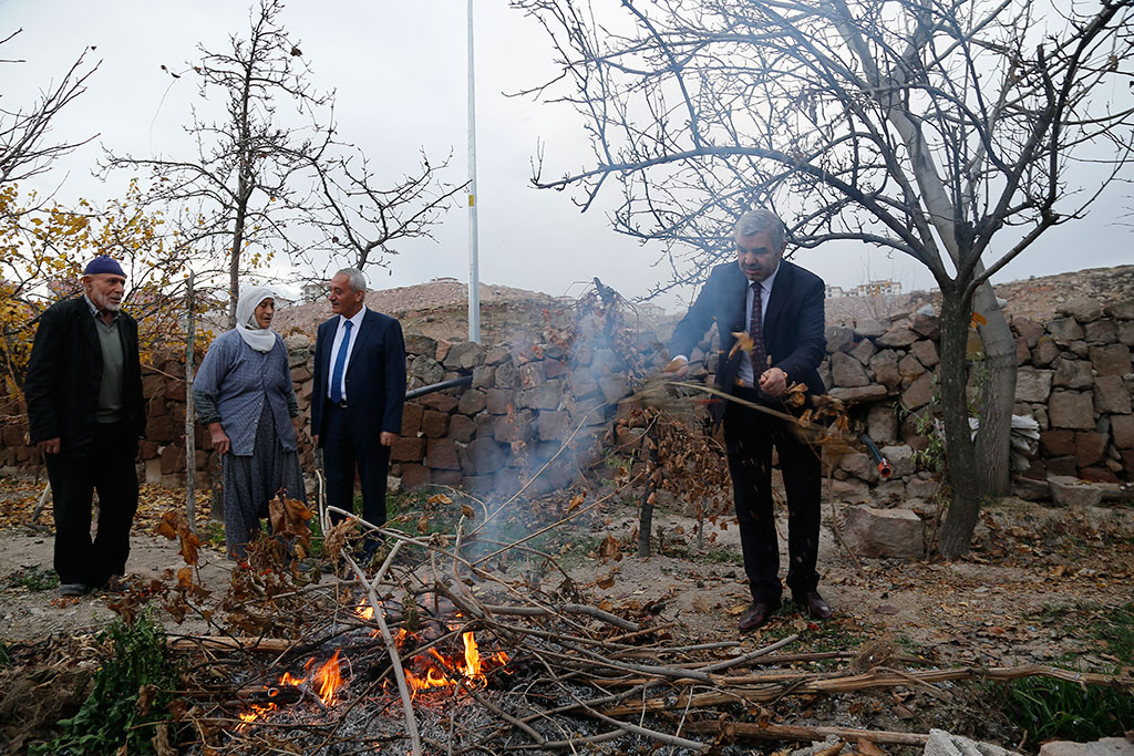 Kayseri Büyükşehir Belediye Başkanı Mustafa Çelik, İncesu’daki asfalt çalışmaları sırasında bağ evlerinde alemet yakan Cesur çiftini ziyaret etti. Şerife ve Mehmet Cesur ile sıcak ve samimi bir sohbet gerçekleştiren Başkan Çelik, bağdaki çalı çırpıyı toplayarak yardımcı oldu. Büyükşehir Belediye Başkanı Mustafa Çelik, İncesu Belediye Başkanı Zekeriya Karayol ile birlikte asfaltlama çalışmalarını takip ederken yol kenarındaki bağ evlerinde alemet yakan Şerife ve Mehmet Cesur çiftini ziyaret etti. Bağcılık kültüründe bağdan inerken çalı çırpı ve gazellerin yakıldığını ve buna da bağcılık kültüründe alemet yakmak denildiğini ifade eden Başkan Mustafa Çelik, bu şekilde bağın temizlendiğini kaydetti. Şerife Nine ve Mehmet Amca ile sıcak ve samimi bir sohbet gerçekleştiren Başkan Mustafa Çelik, çalı çırpı toplayarak bağın içinin temizlenmesi için Cesur çiftine yardımcı oldu.
