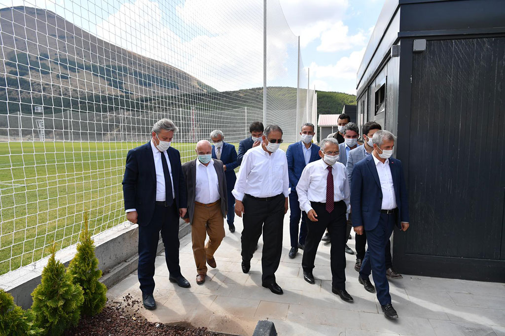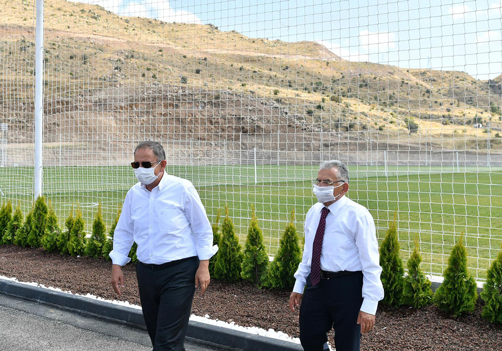 Kayseri Büyükşehir Belediye Başkanı Dr. Memduh Büyükkılıç, AK Parti Yerel Yönetimlerden Sorumlu Genel Başkan Yardımcısı Mehmet Özhaseki ile birlikte Erciyes’i çok yönlü olarak 12 ay boyunca değerlendirmek ve sporun merkezi konuma getirmek için çalışmaların sürdüğü Yüksek İrtifa Kamp Merkezi’nde incelemelerde bulundu. Büyükşehir Belediye Başkanı Dr. Memduh Büyükkılıç, Kayseri için çok önemli ve stratejik bir yatırım olan Yüksek İrtifa Kamp Merkezi’ni, AK Parti Yerel Yönetimlerden Sorumlu Genel Başkan Mehmet Özhaseki’nin yanı sıra AK Parti Kayseri Milletvekili İsmail Tamer, Gaziantep Şahinbey Belediye Başkanı Mehmet Tahmazoğlu ve Melikgazi Belediye Başkanı Mustafa Palancıoğlu ile birlikte inceledi. İncelemeler sırasında Erciyes Yüksek İrtifa Merkezi’nin Kayseri için önemli bir kazanım olacağını dile getiren Başkan Büyükkılıç, “Erciyesimiz sadece kış turizmin merkezi olarak değil, 12 ay boyunca birbirinden farklı değerleriyle bizlere kendini gösteriyor. Yüksek İrtifa Kamp Merkezimizle birlikte burada sporun merkezi konumuna geleceğiz. İki adet futbol sahamızı kullanıma hazır hale getirdik. 6 adet sahanın da tamamlanmasıyla Erciyes, Yüksek İrtifa Kamp Merkezi olarak dünyaca tanınan ve tercih edilen bir yer haline gelecek” dedi.