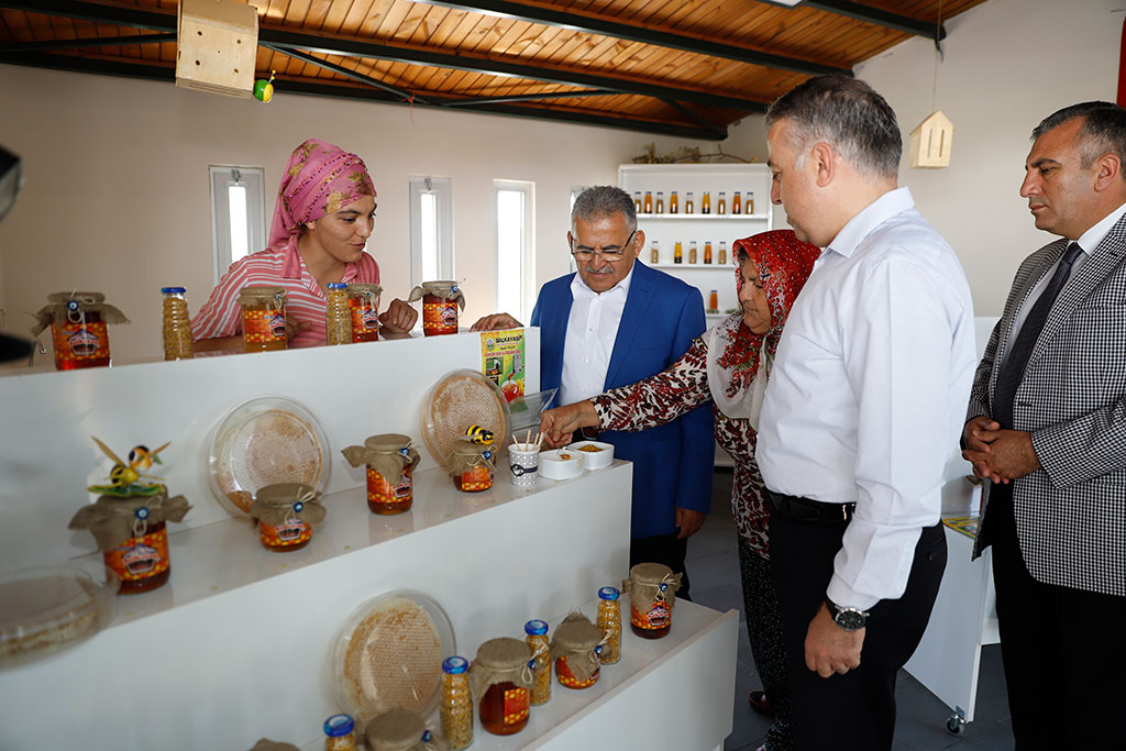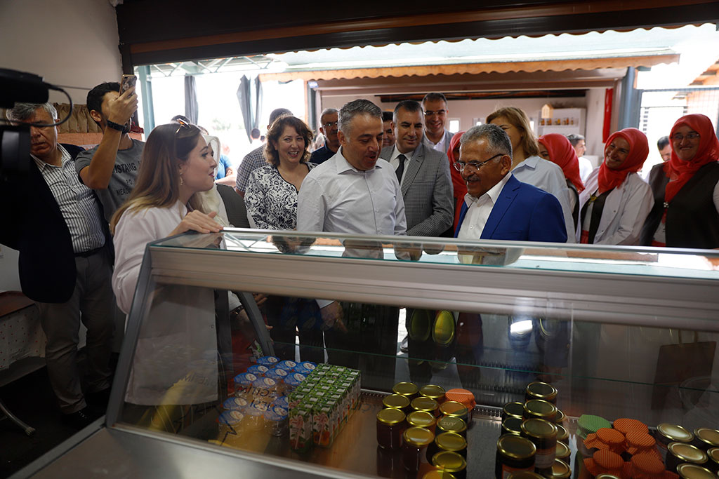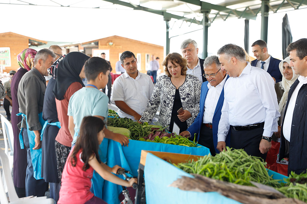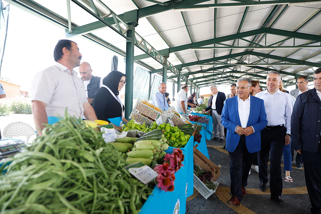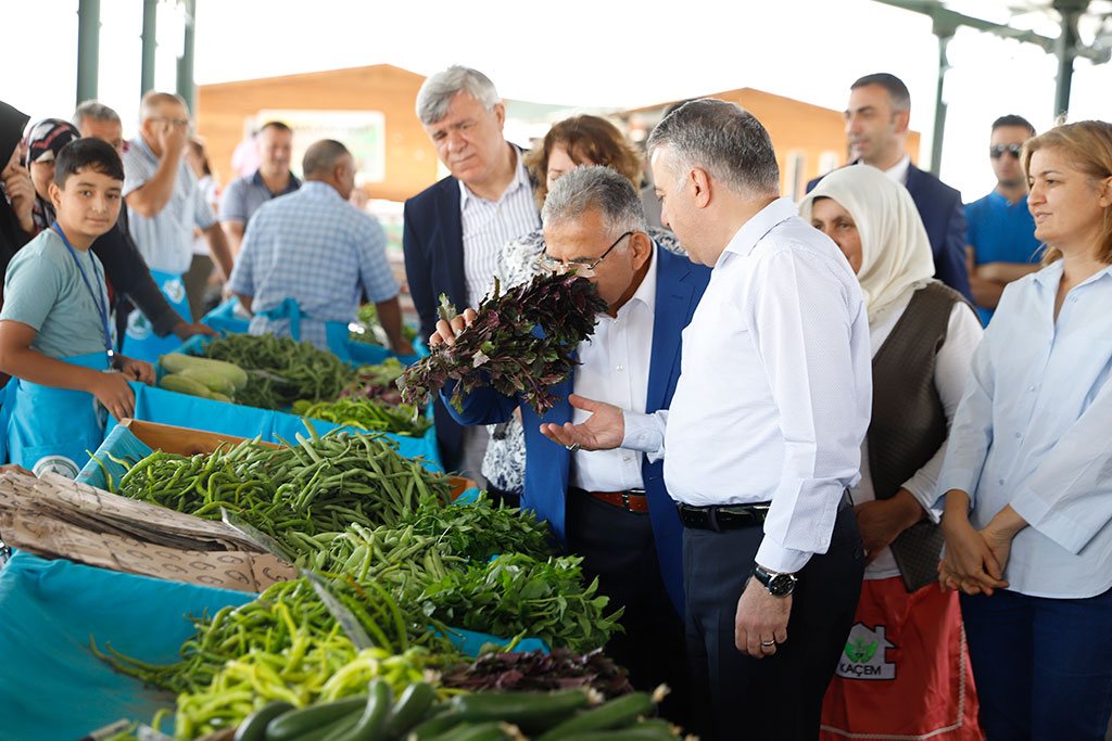 Kayseri Büyükşehir Belediyesi tarafından Anadolu Harikalar Diyarı yanında yapılan Doğal Ürünler Bahçesi ve Pazarı’nda yeni sezonun ilk pazarı kuruldu. Yüzde 100 organik ve yüzde 100 doğal ürünlerin satışa sunulduğu pazarı Büyükşehir Belediye Başkanı Dr. Memduh Büyükkılıç da ziyaret etti. Büyükşehir Belediyesi tarafından 60 bin metrekarelik alanda kurulu olan Doğal Ürünler Bahçesi ve Pazarı, yeni sezonun ilk ürünleriyle sağlıklı beslenmek isteyenleri bekliyor. Büyükşehir Belediye Başkanı Dr. Memduh Büyükkılıç, Tarım Orman İl Müdürü Mustafa Şahin ve Kapadokya Organik Tarım Üreticileri Birliği Derneği (KAPTAR) Başkanı Yeşim Bekyürek ile birlikte Doğal Ürünler Pazarı’nı ziyaret etti. Başkan Büyükkılıç, ürünleri inceledi, üreticilerle sohbet etti. Doğal Ürünler Pazarı’nın hafta sonları hizmet vereceğini ifade eden Başkan Memduh Büyükkılıç, “Buraya gelen vatandaşlarımız organik ürünleri fiyat ve kalite açısından daha uygun bir şekilde birinci elden alma şansına sahipler” dedi. Büyükşehir Belediye Başkanı Büyükkılıç, pazarda organik gıda satışı yapan dükkanları da gezdi. Başkan Büyükkılıç, Büyükşehir Belediyesi’nin de destek verdiği projeyle organik tarım yapan Kadın Çiftçiler Ekolojik Eğitim ve Üretim Merkezi Girişimi Üretim ve İşletme Kooperatifi’nin (KAÇEM) dükkanını da ziyaret etti. KAÇEM üyesi çiftçiler, ürünlerinin kalitesinin Cumhurbaşkanlığı Külliyesi tarafından da onaylandığını belirttiler.