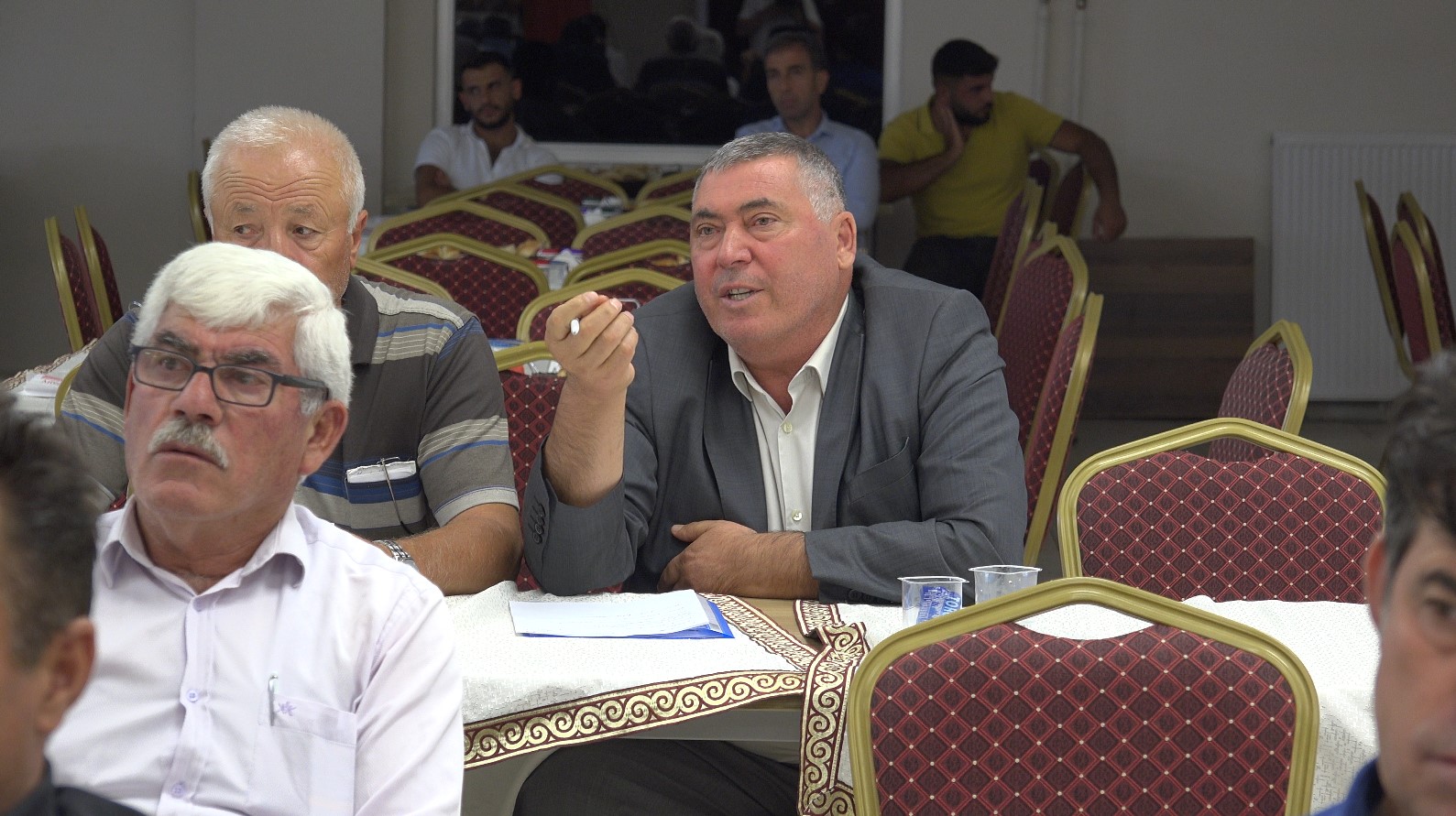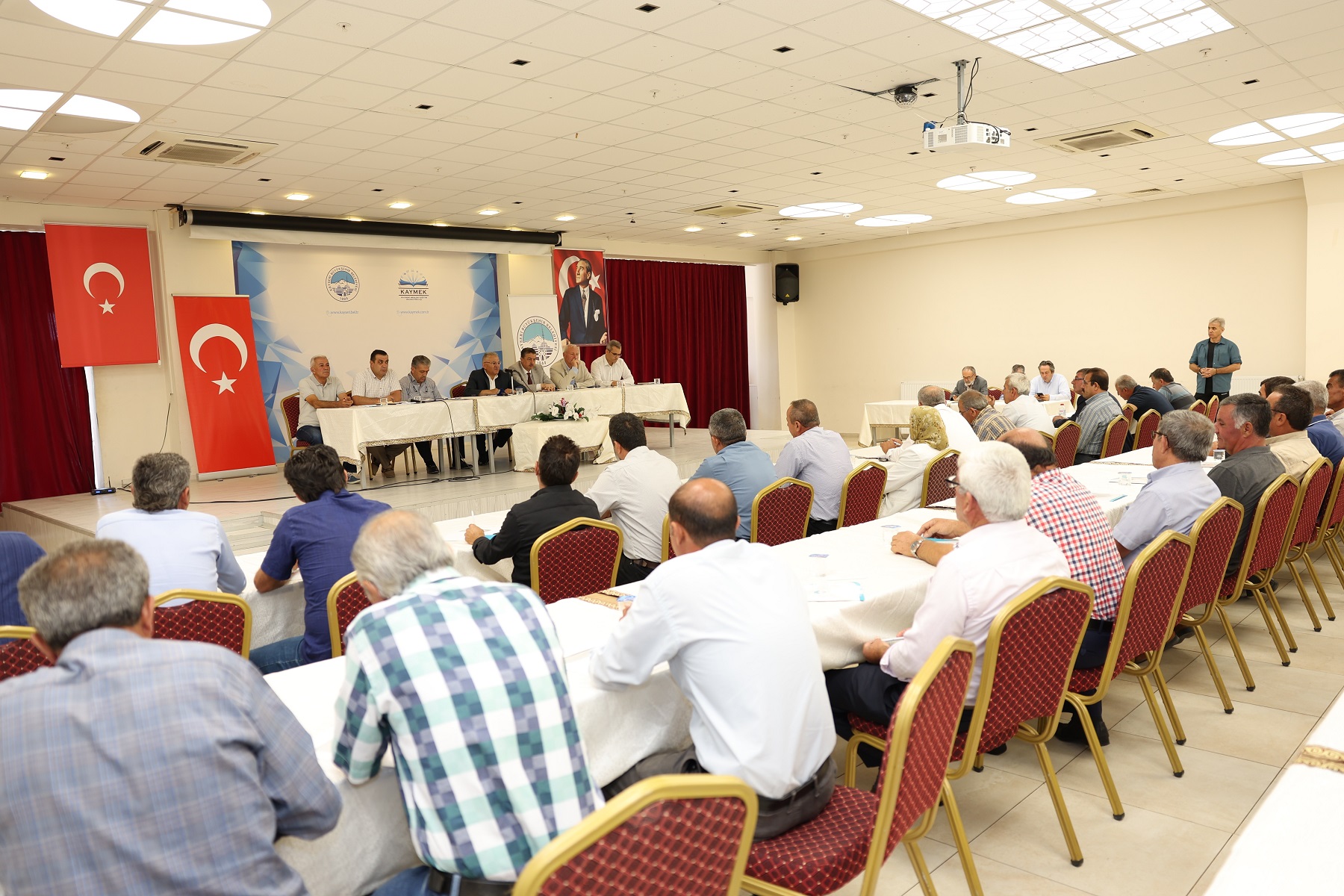 ilçesinde mahalle muhtarları ve çiftçilerle bir araya geldi.
