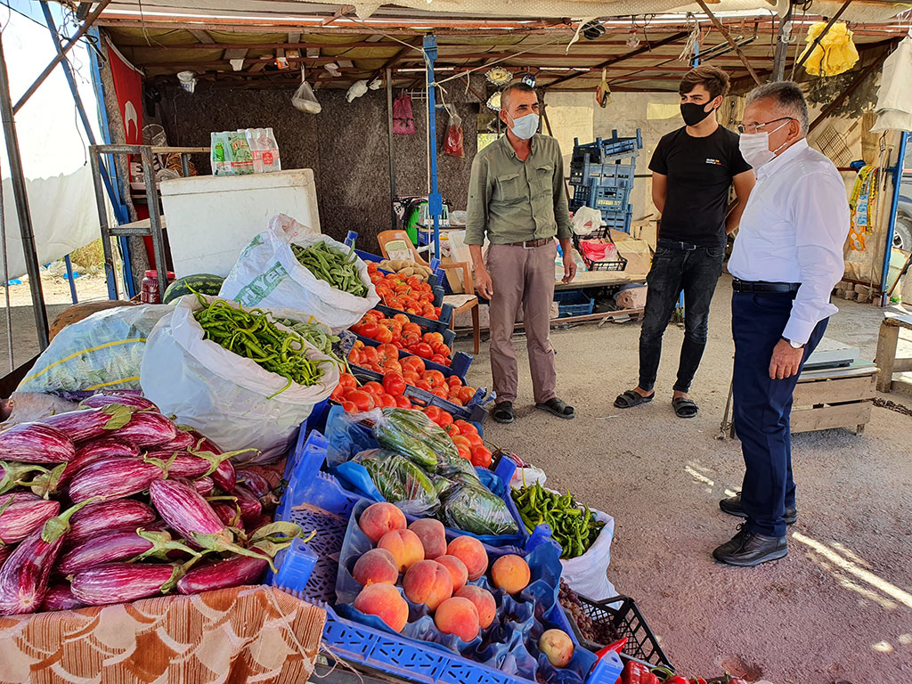 Kayseri Büyükşehir Belediye Başkanı Dr. Memduh Büyükkılıç, Kayseri Valisi Şehmus Günaydın ile birlikte Cumhuriyet Meydanı’ndan başlayarak Kazancılar Çarşısı, Millet Caddesi ve Sivas Caddesi girişindeki balıkçıların bulunduğu bölgede esnaf ve vatandaşlara maske, mesafe ve temizlik konusunda uyarılarda bulundu.
