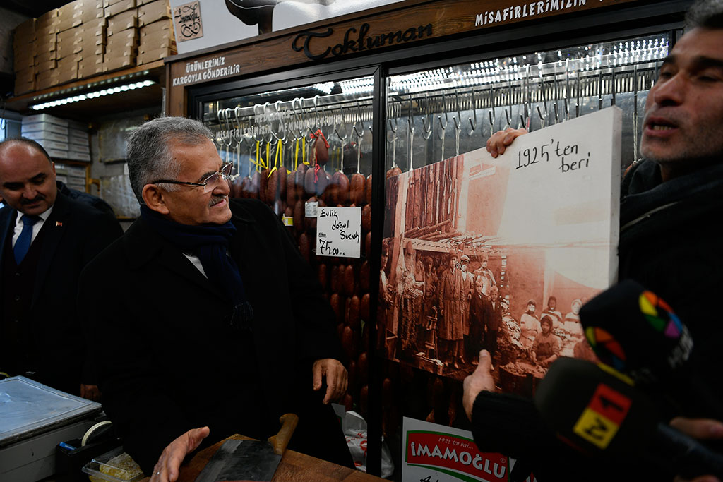 Başkan Büyükkılıç, Vali Günaydın ile birlikte Cumhuriyet Mahallesi’ndeki sucuk ve pastırmacı esnafını gezdi.